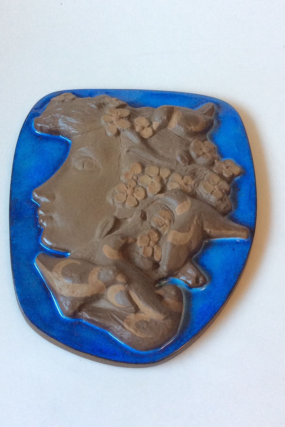 Royal Copenhagen Aluminia Hedegaard Relief of girl with birds no. 161/2887.