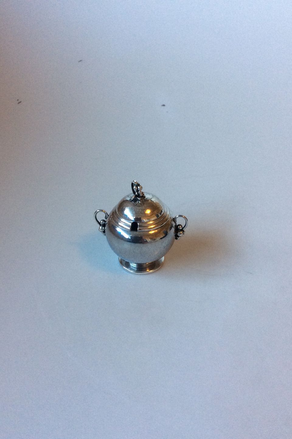 Georg Jensen Sterling Sølv Sennepskrukke med blå emalje No 724.