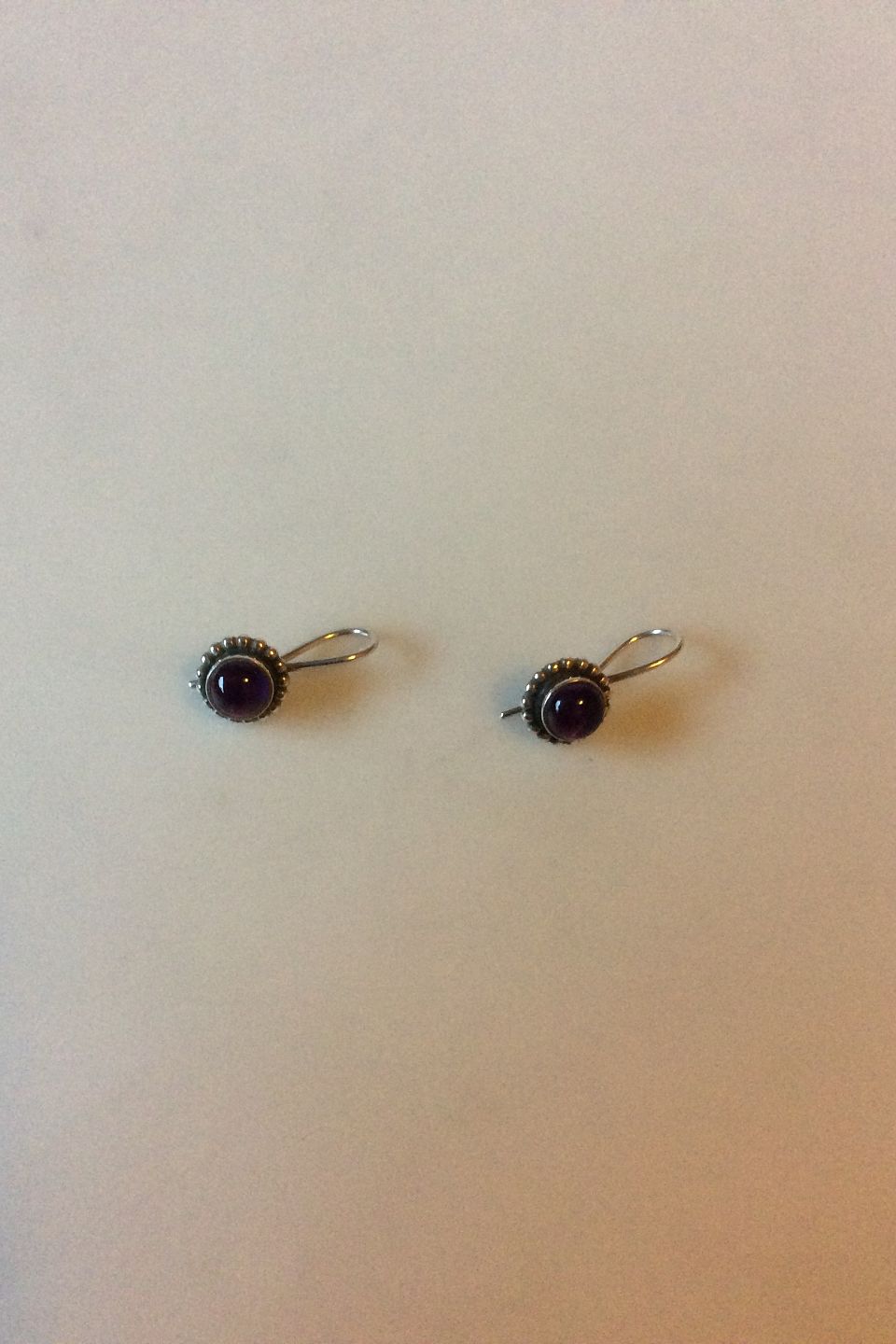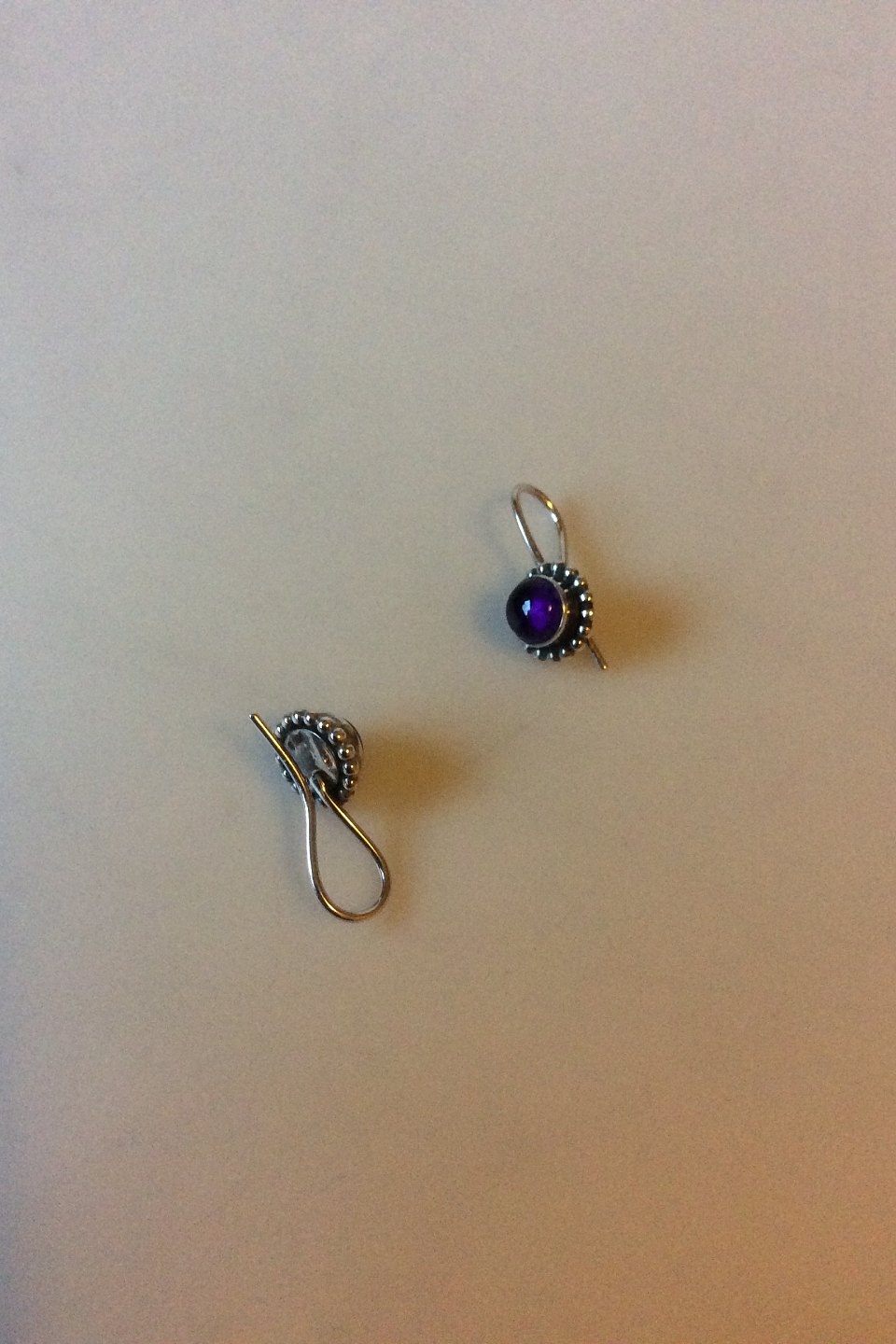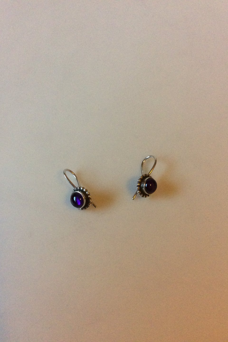 Georg Jensen Sterling Sølv Ørestikker, "Moonlight Blossom" No 9 med lilla sten. Måler 2 cm. Vejer tilsammen 2,7 g