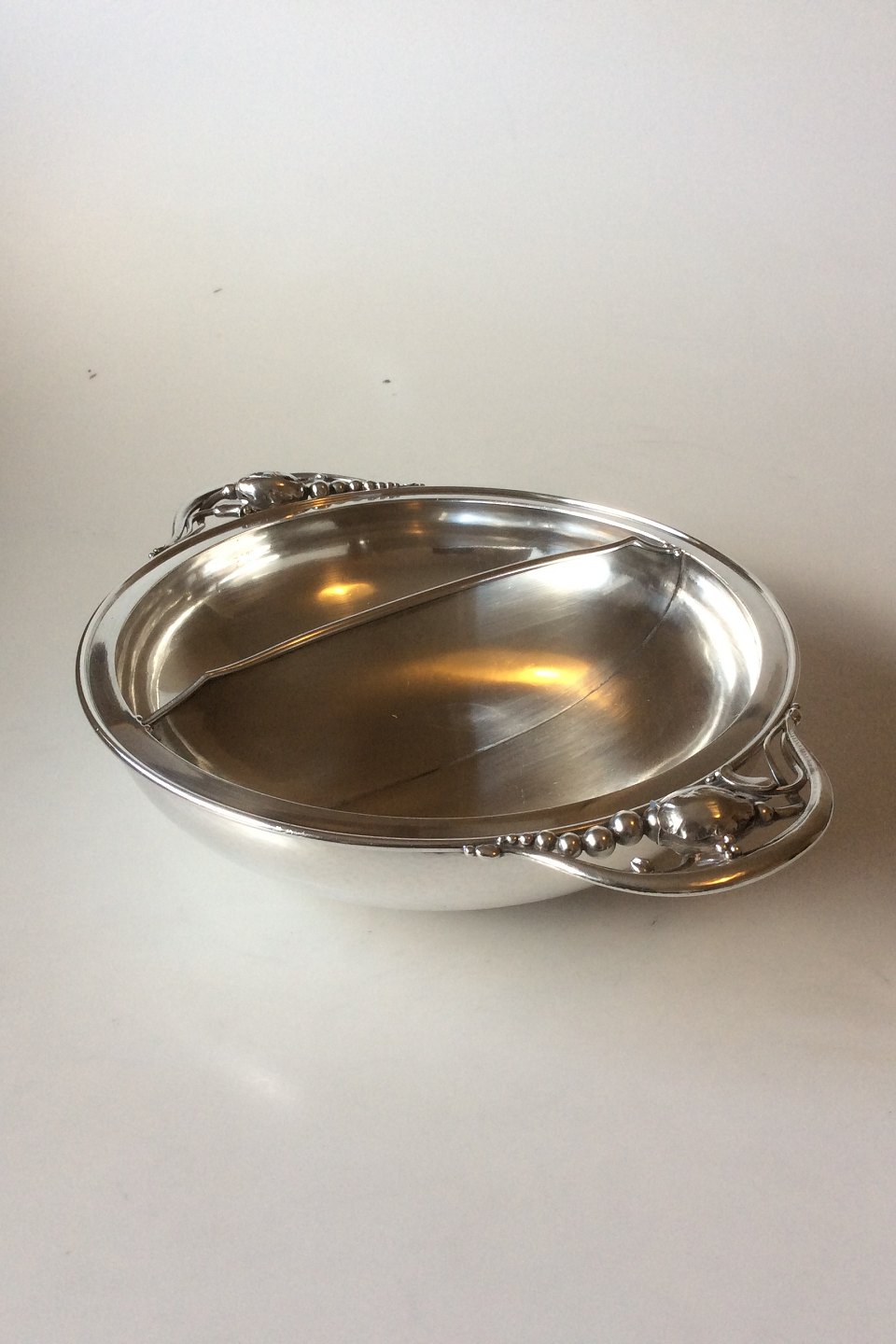Georg Jensen Sterling Sølv Todelt Magnolia Skål No 2D. Måler 8 x 31 cm. Vejer 1118 g.
