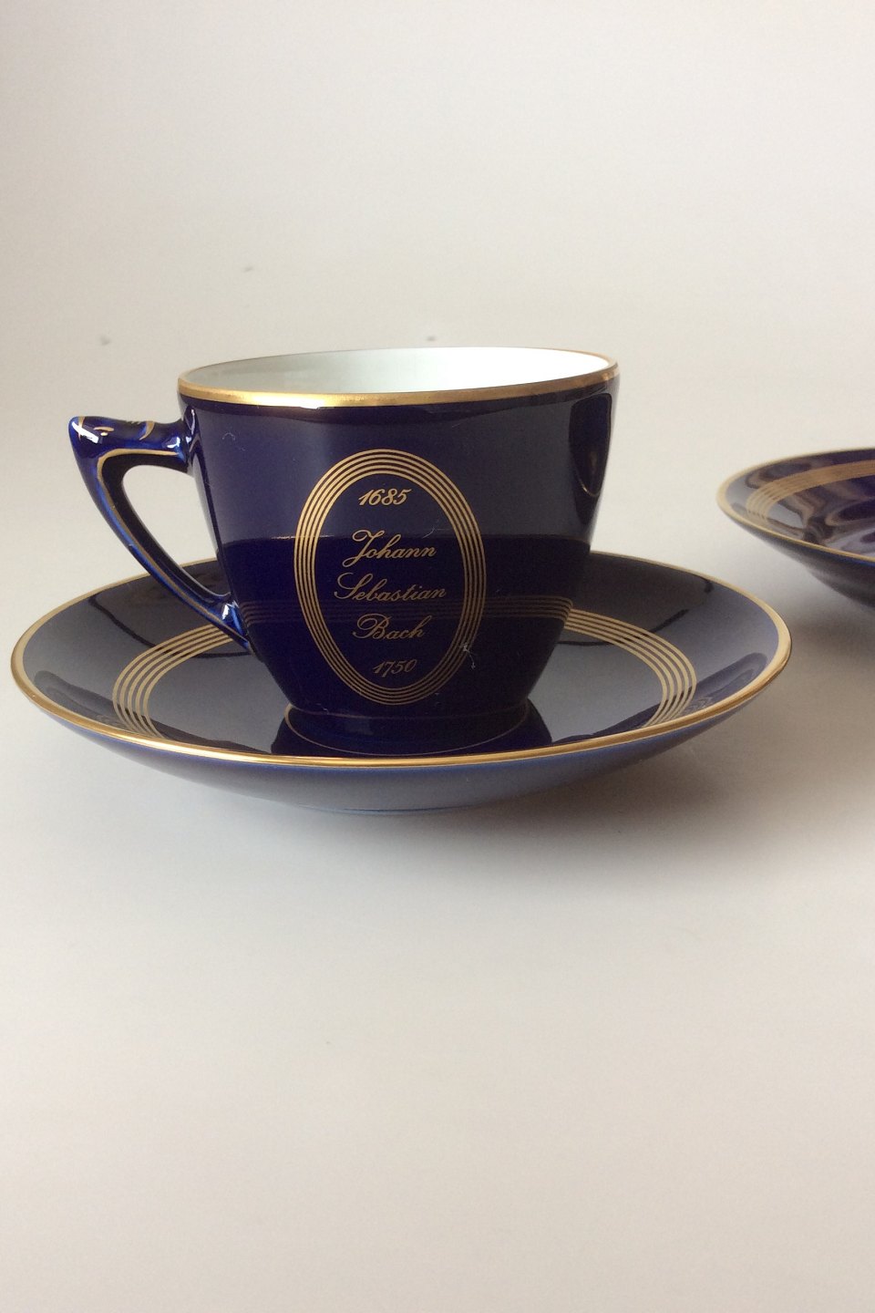 Bing & Grøndahl Komponiststellet Johann Sebastian Bach kaffekop med underkop og sidetallerken. Måler: kop 7 x 13,5 cm, sidetallerken 17 cm