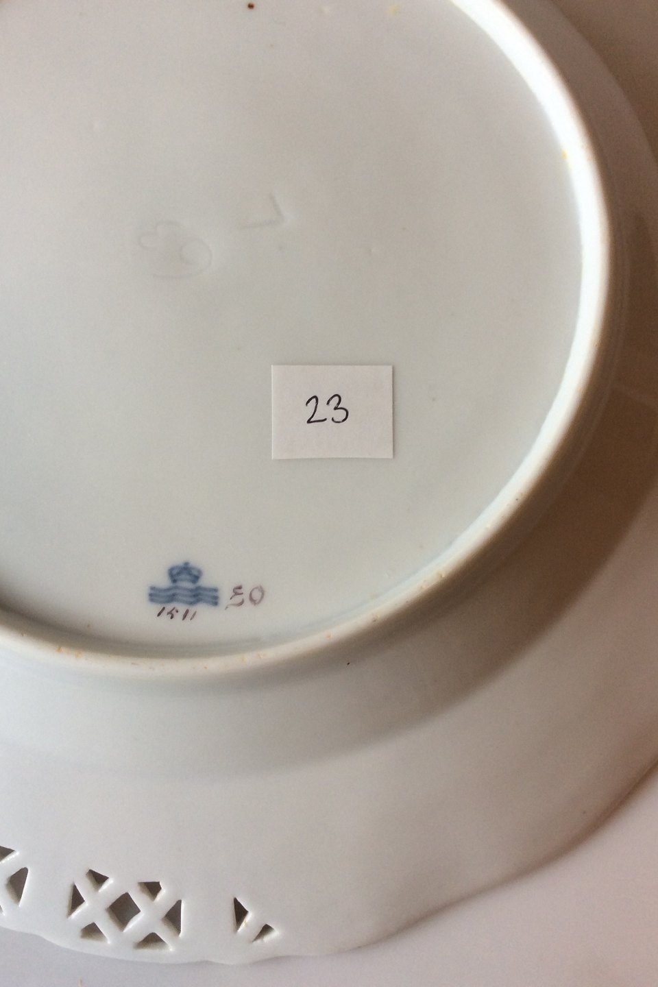 Royal Copenhagen Saksisk Blomst Middags-/Frugttallerken i luksusmodel med gennembrudt kant.