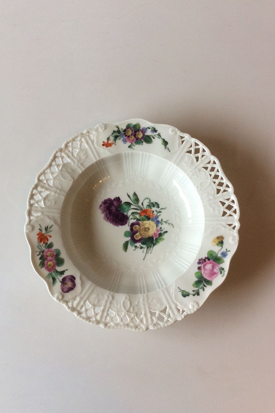 Royal Copenhagen Saksisk Blomst Dyb Tallerken i luksusmodel med gennembrudt kant.