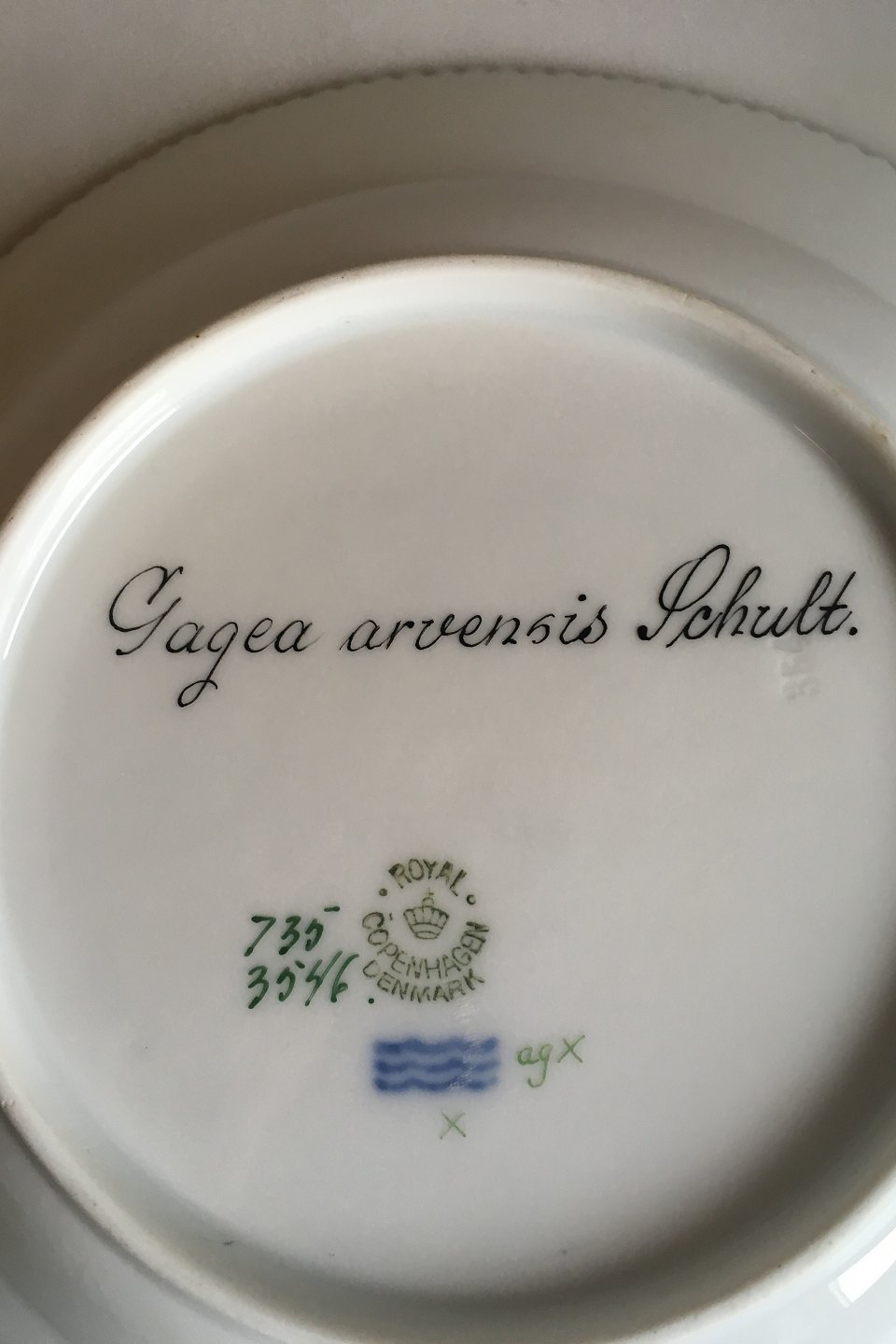 Royal Copenhagen Flora Danica Deserttallerken No 735/3546. Latinsk navn: Gagea arvensis Schult.