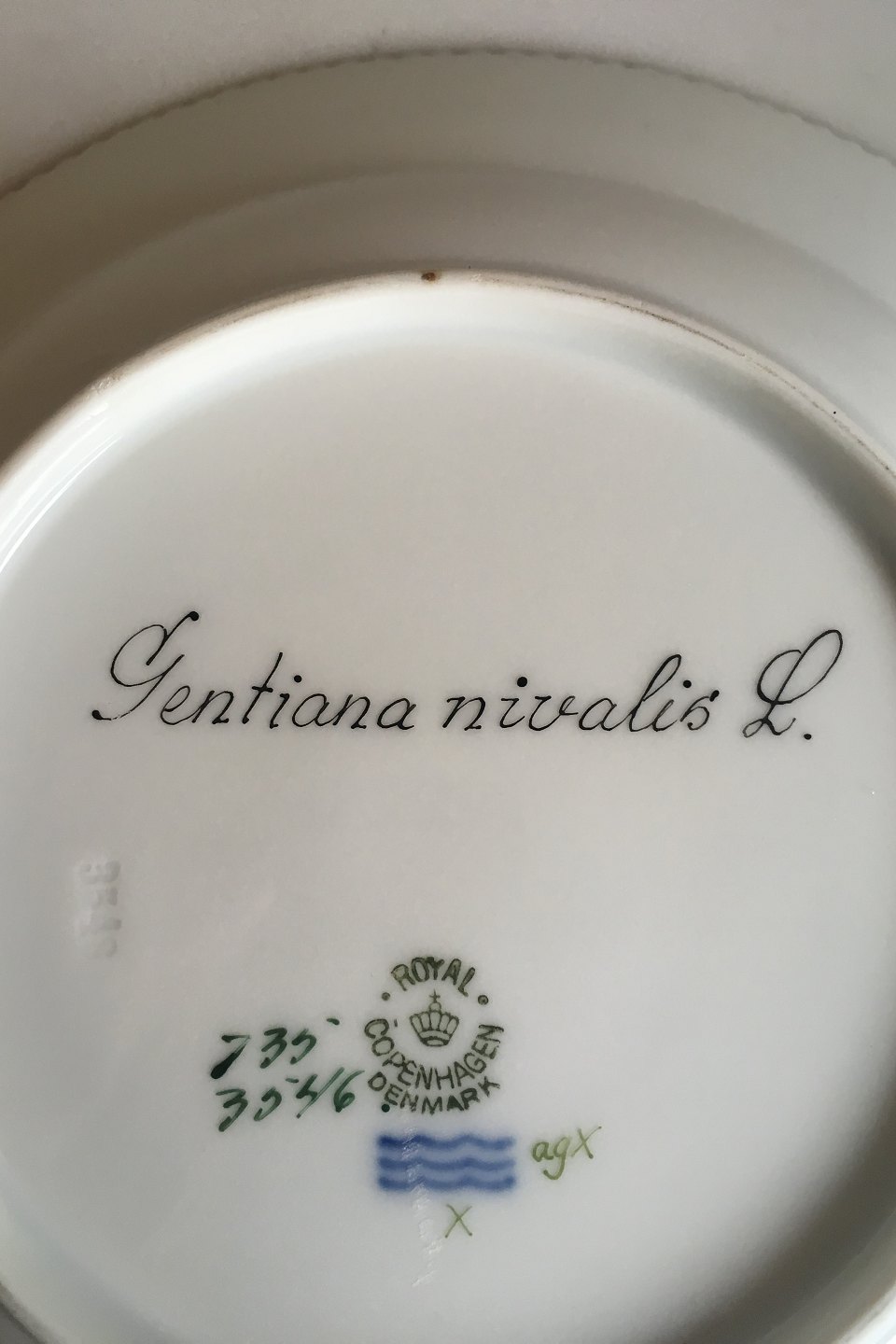 Royal Copenhagen Flora Danica Deserttallerken No 735/3546. Latinsk navn: Gentiana nivalis L.