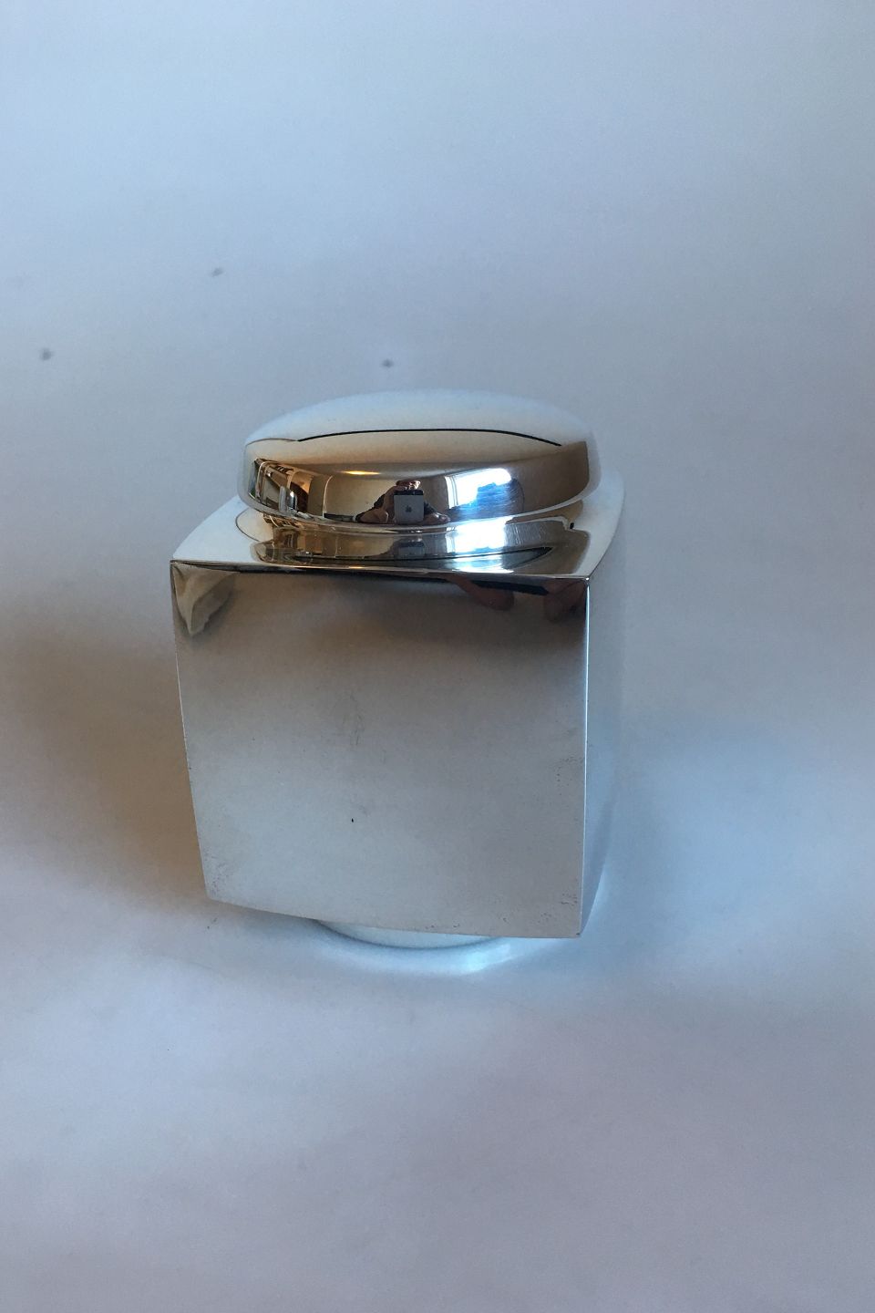 Hans Hansen Sterling Silver Square Tea Box with Round Lid by Karl Gustav Hansen No. 2/100 from 1984. Measures 8.5 x 7 x 7 cm / 3 11/32 x 2 3/4 x 2 3/4". Weighs 237 g / 8.35 oz.