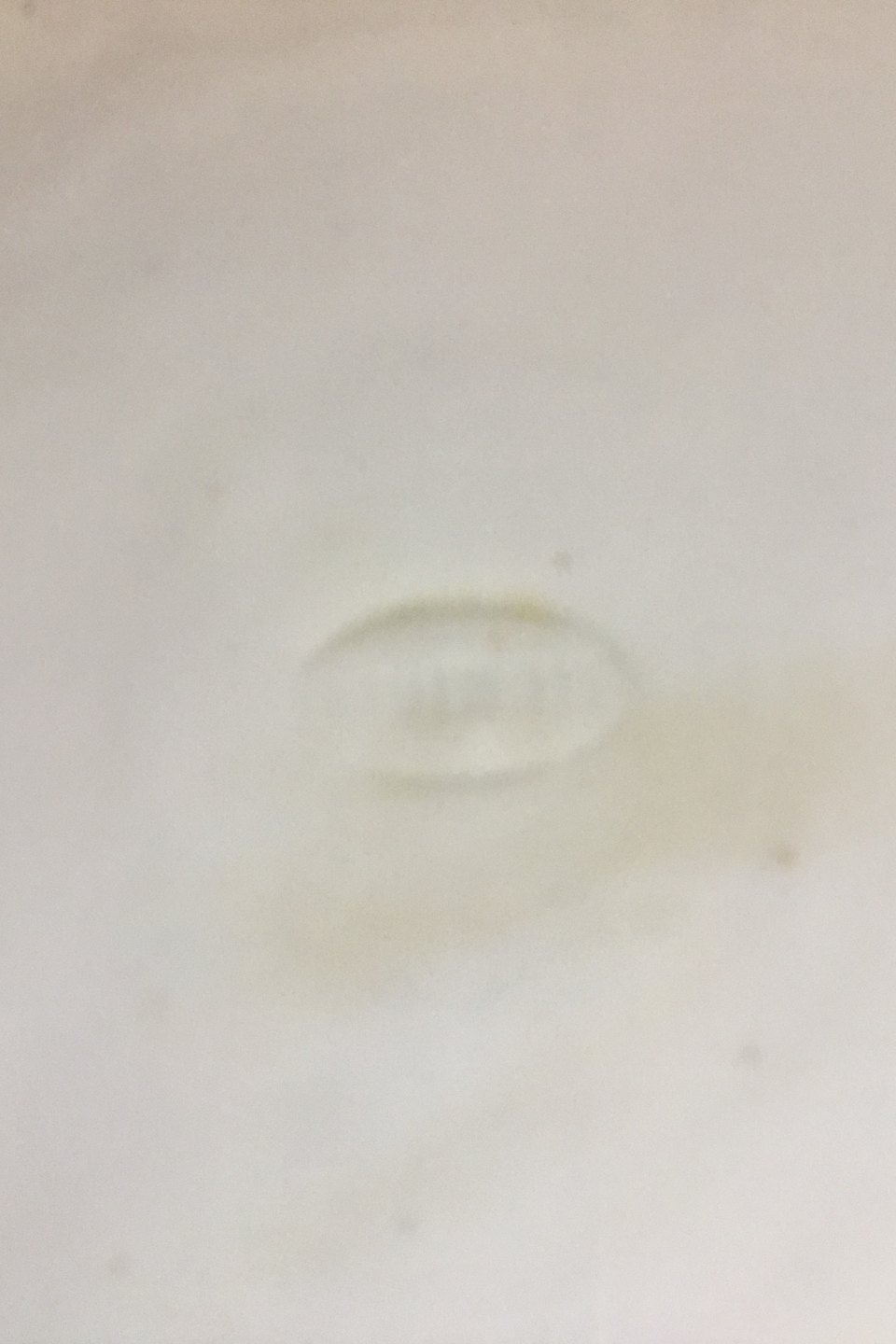 Aluminia Fantasi kagefad i porcelæn med motiv B: To måger. Nilaus Fristrup 1882. Måler 33,8 cm. Med ovalt indpresset Aluminia-mærke. I god stand. Sjælden. Omtalt i Bogen "Aluminia" af E. W. Flensborg Bind I side 103.