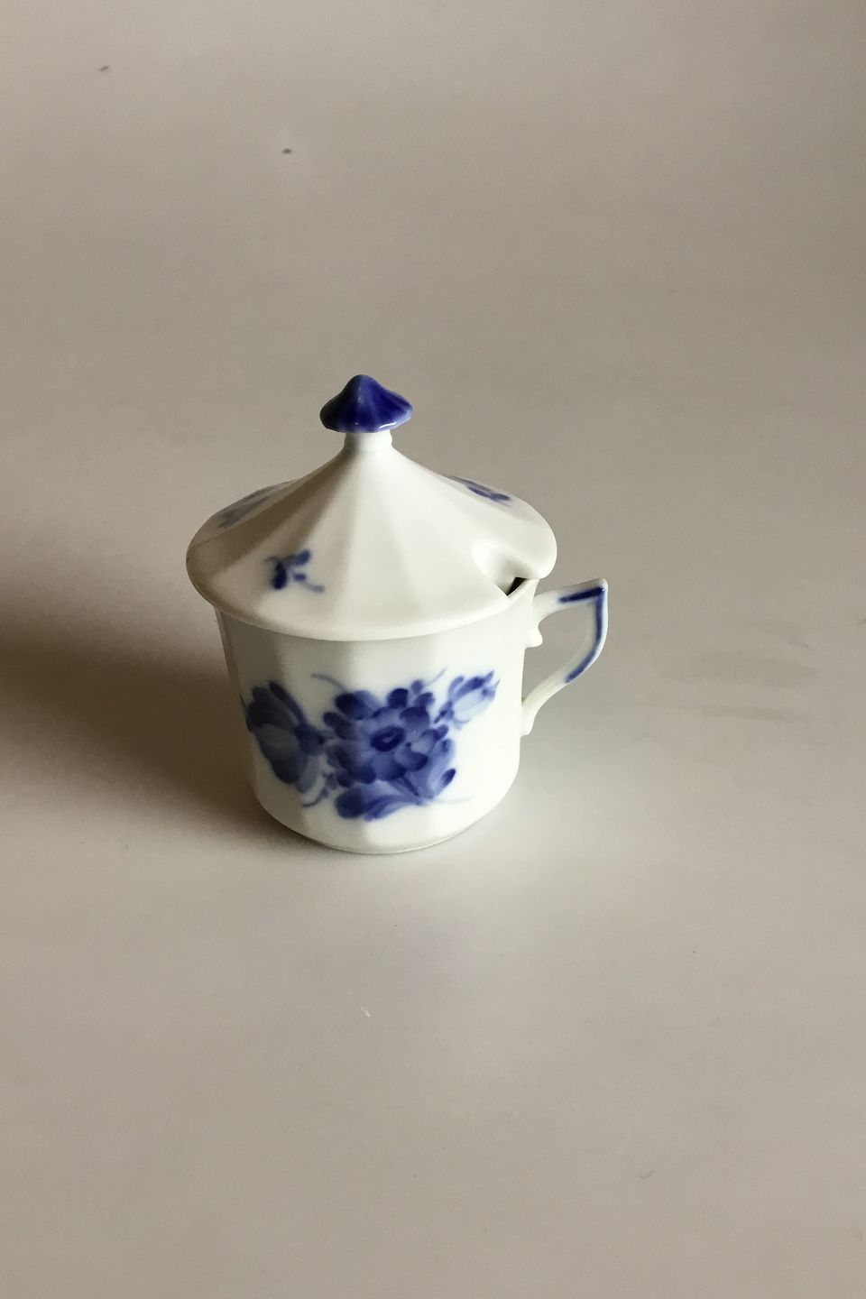 Royal Copenhagen Blå Blomst Sennepskrukke No 8570 med låg No 8586. Måler 9 cm