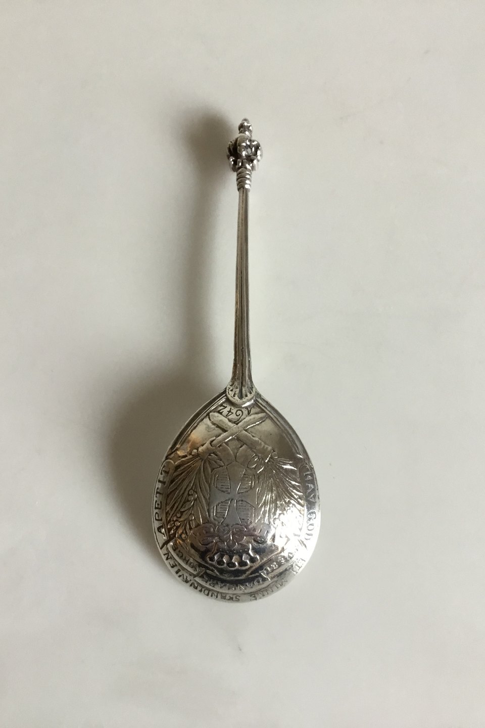 Souvenir Sølv Ske fra Skandianvian Danmark, Norge Sverige. Med data fra 1642.