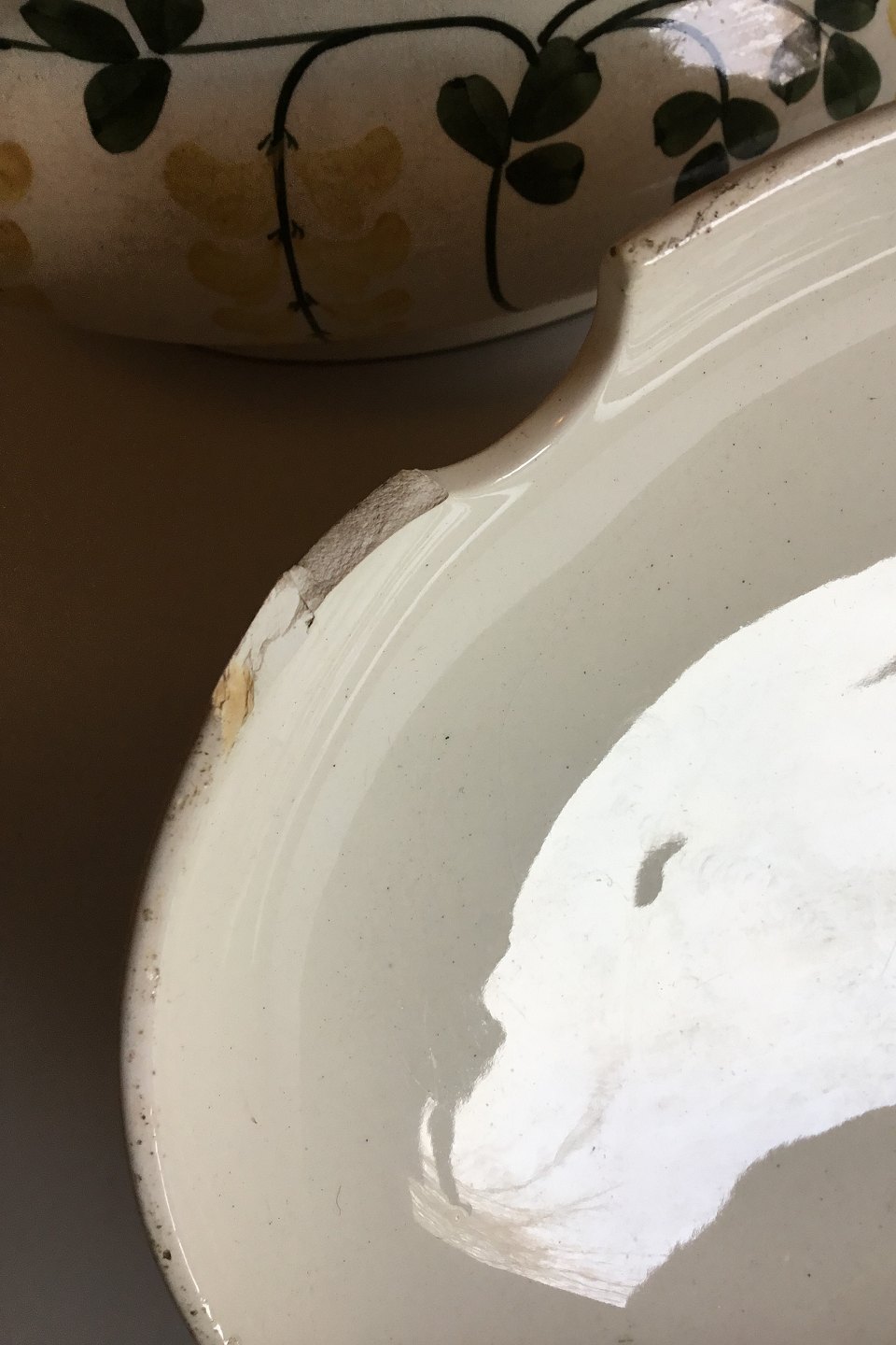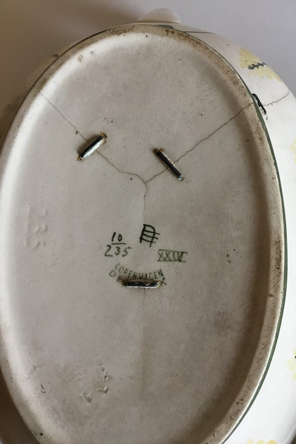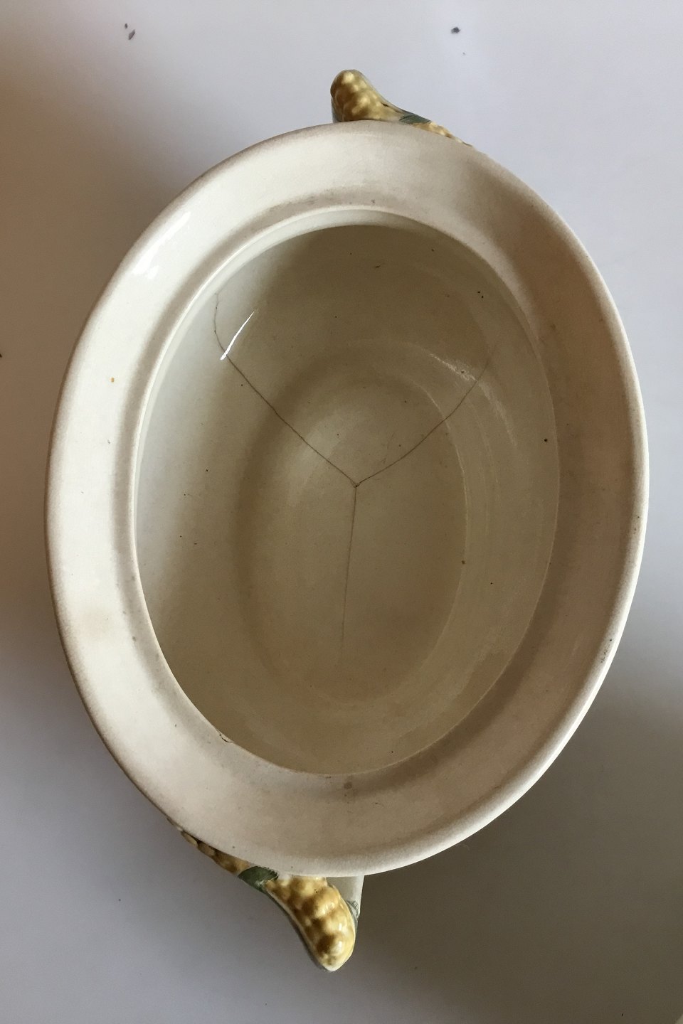 Aluminia Guldregn(Laburnum) Terrin No 10/235. Måler 35 cm x 21 cm. Låget har afslag og skålen er klinket i bunden.