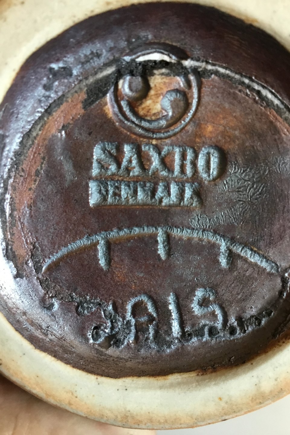 Saxbo Stentøjsvase/kande med grøn glasur. Designet af Jais Nielsen. Måler 15 cm