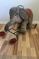 Steiff 125 Elefant på fire hjul. Intakt, men med enkelte huller og tilsmudset. Fra 1950-erne eller tidligere