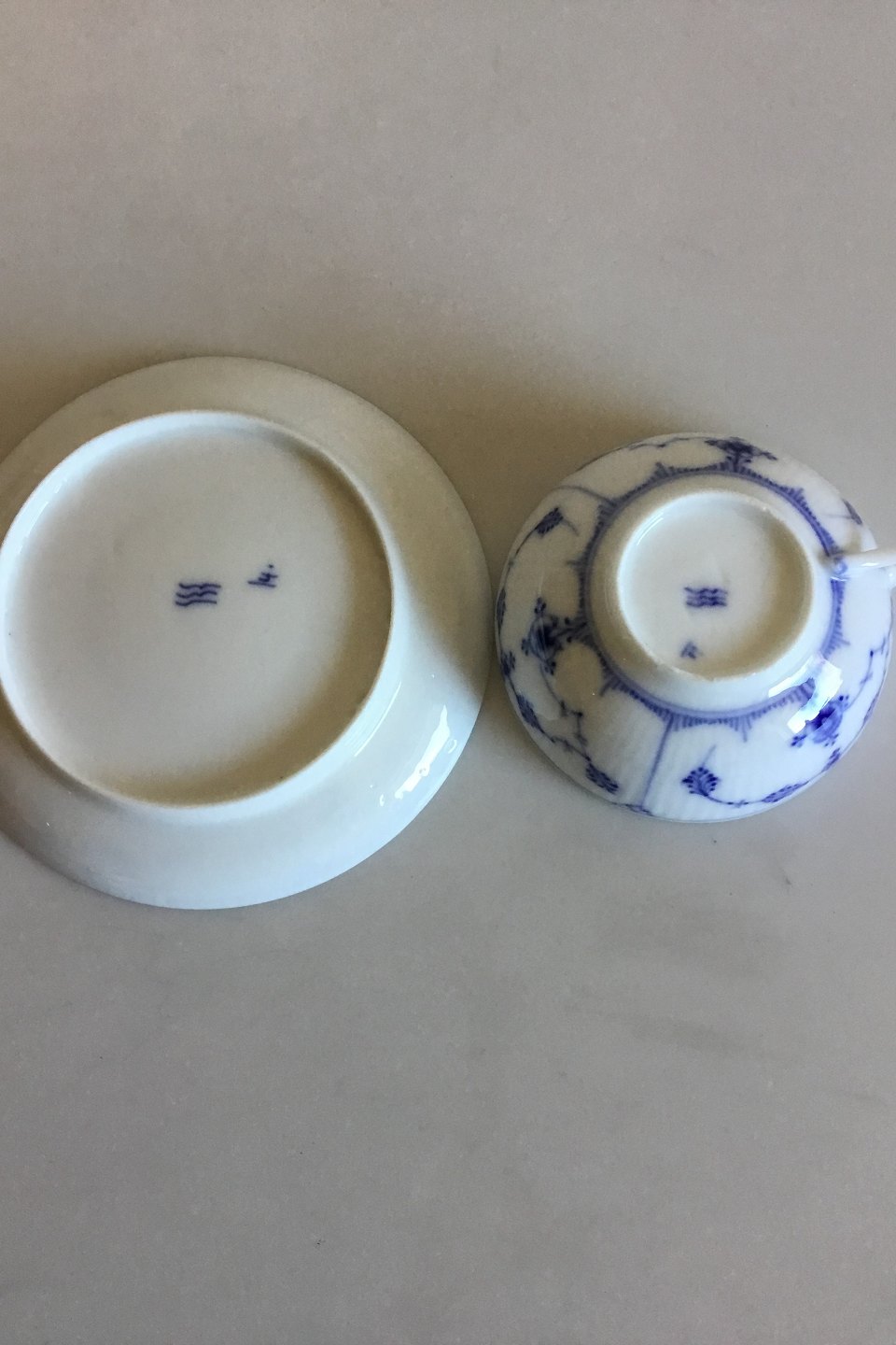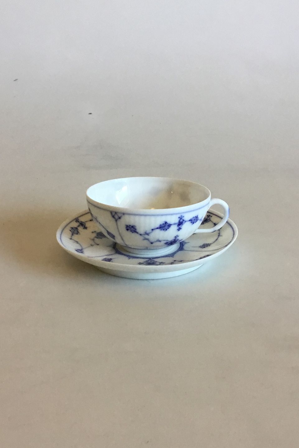 Royal Copenhagen Musselmalet Riflet Moccakop No 1/437. Måler Kop: 7,7 cm dia x 3,6 cm, Underkop 11,5 cm dia.