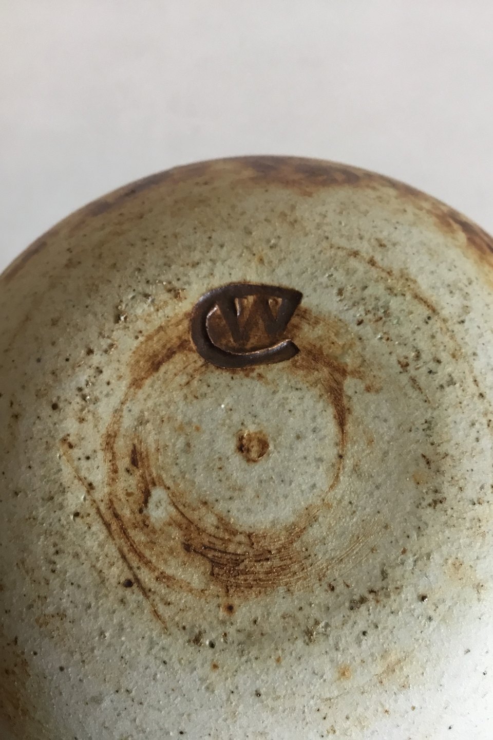 Conny Walther Kugleformet Stentøjsvase med med høj hals. Måler 14 cm