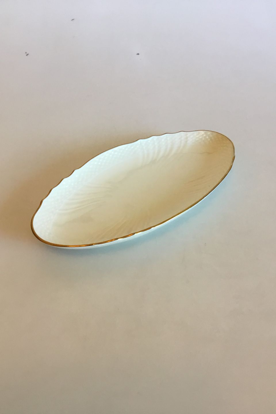Royal Copenhagen Creme Svejfet med Guld (Stel 1235) Lille Ovalt fad No 1689. Måler 24 cm x 12,5 cm