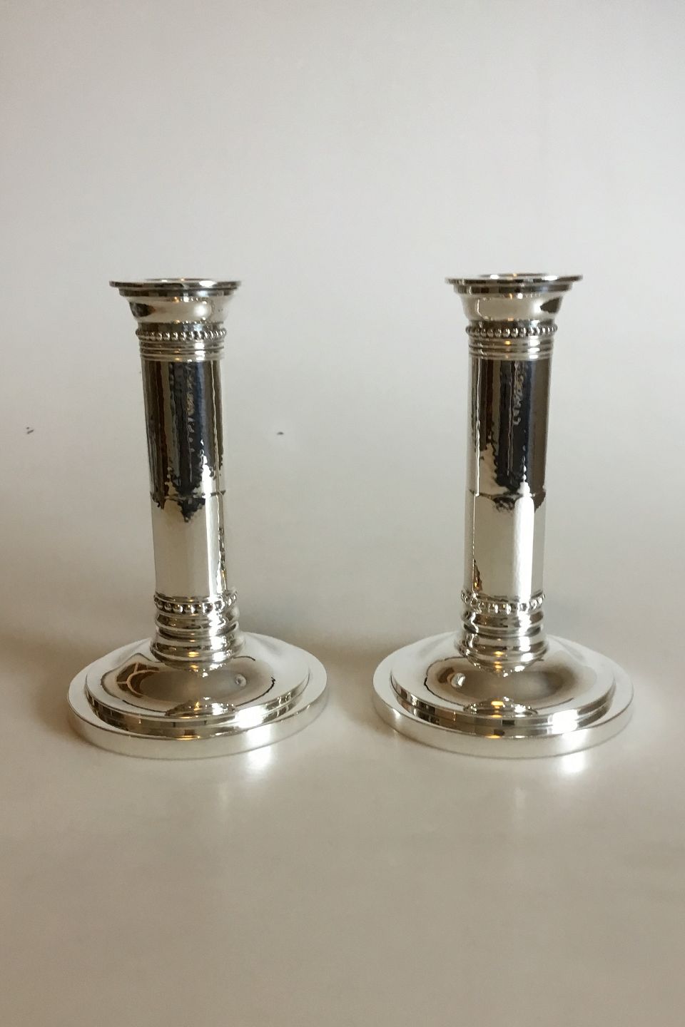 Georg Jensen Sterling Sølv Par Lysestager No 454A. Designet af Johan Rohde. Måler 15,5 cm/ 6.10 in. Vejer tilsammen 820 gram. / 28.92 oz. Fra efter 1945