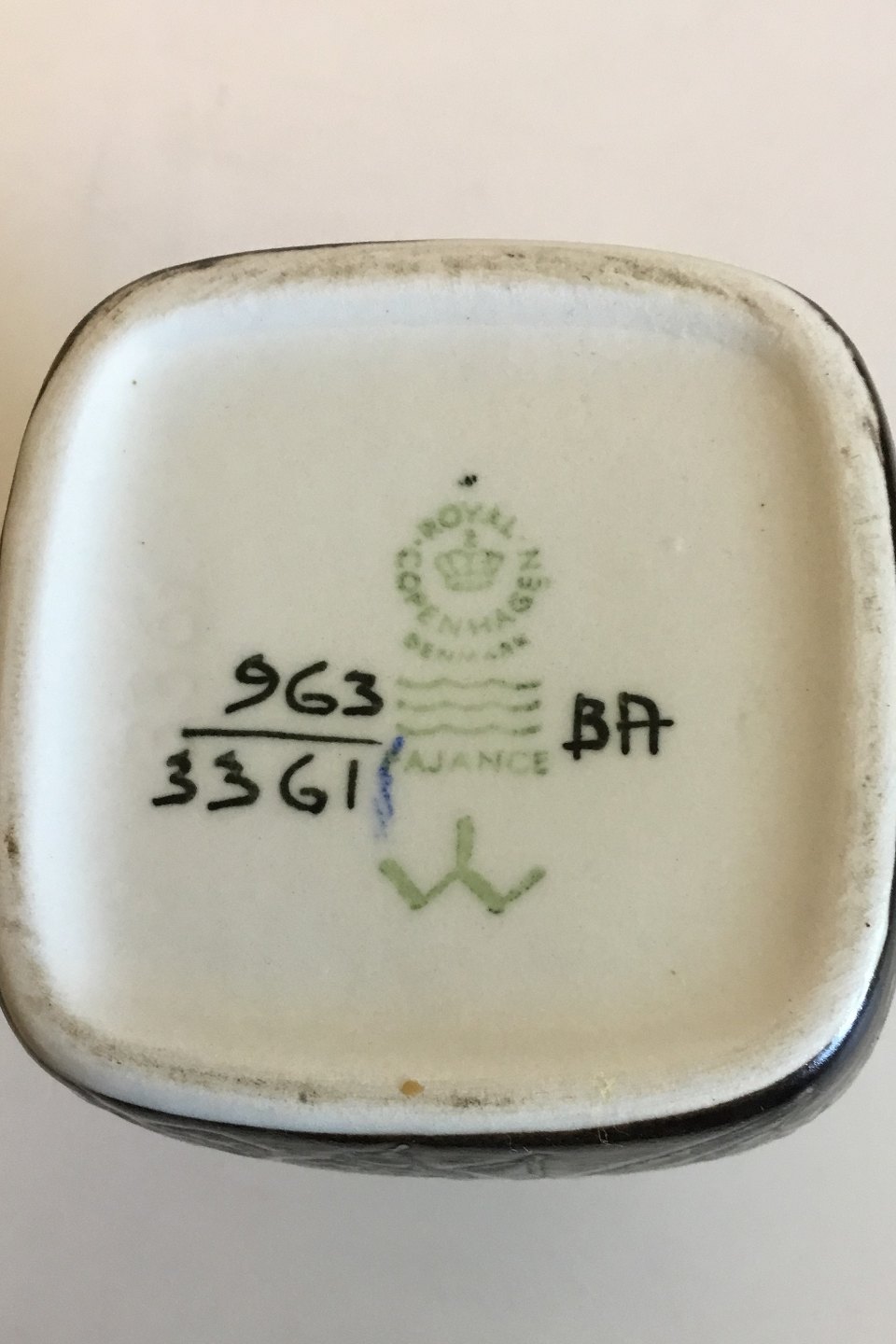 Royal Copenhagen Fajance Vase No 963/3361. Designet af Ivan Weiss. Måler 11 cm