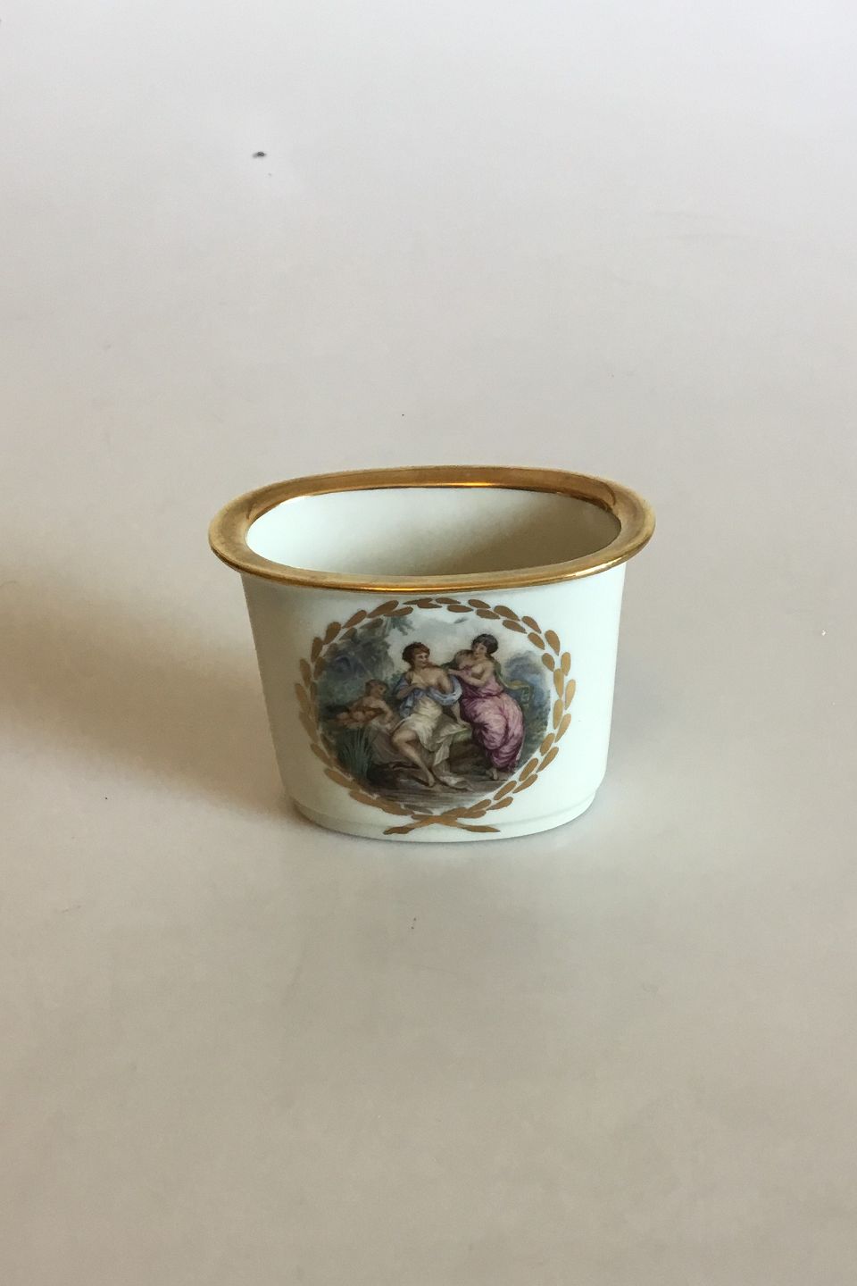 Royal Copenhagen Mythological Decoration with Cupid Cigarette Cup/Toothpick Holder. Measures 7.8 cm / 3 5/64 in. x 4.8 cm / 1 57/64 in. x 5.8 cm / 2 9/32 in.