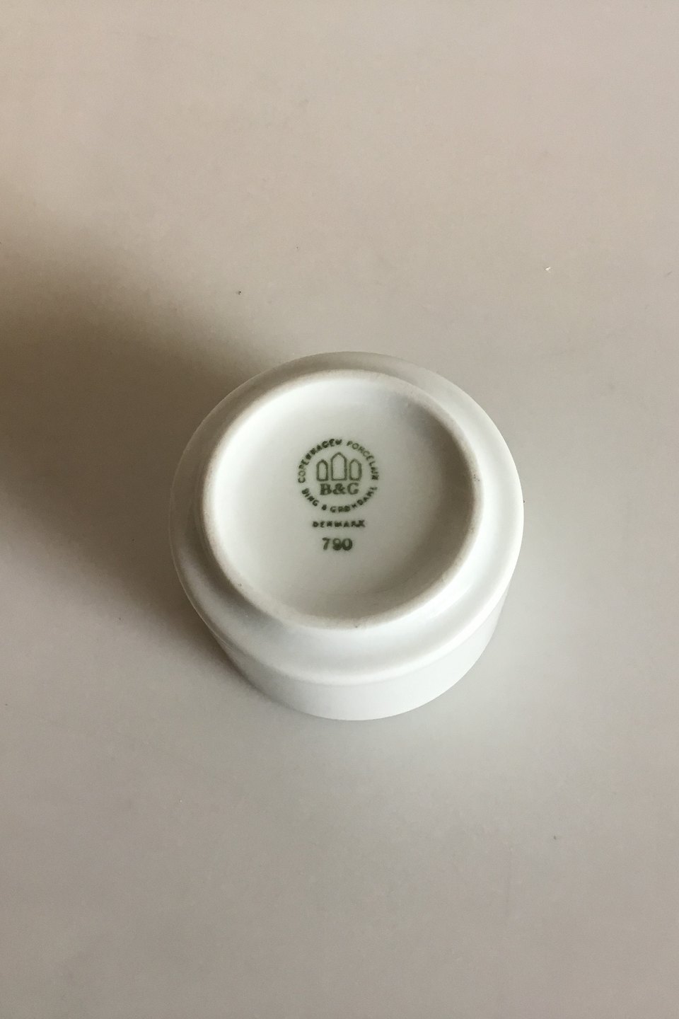 Bing & Grondahl Hank Sugar Bowl No 790. Designed by Erik Magnussen. With logo. Measures 4.5 cm / 1 49/64 in. x 6.5 cm / 2 9/16 in. and is in good condition