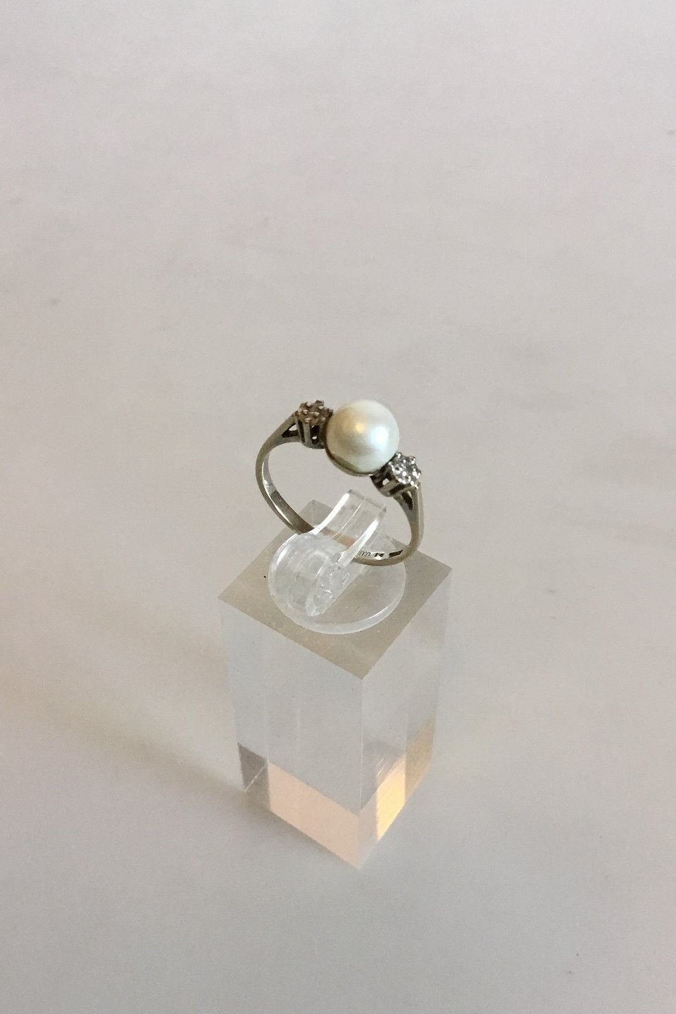 Ring i 14 K Hvidguld med Perle og to små Brillanter. Ringstørrelse 51. Vejer 2,17 gram. Stempler Br.J 585 (Bræmer-Jensen)