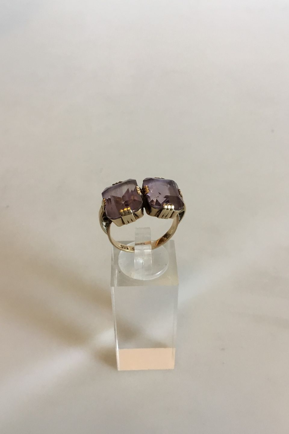 Guldring med to Ametyster. 14 K. Ringstørrelse 54. Vejer 6.65 gram. Stemplet 585 Fønss (Svend Fønss)