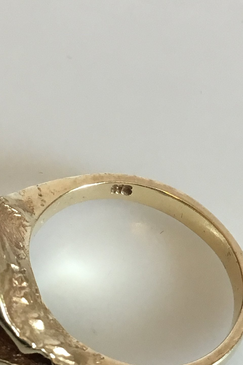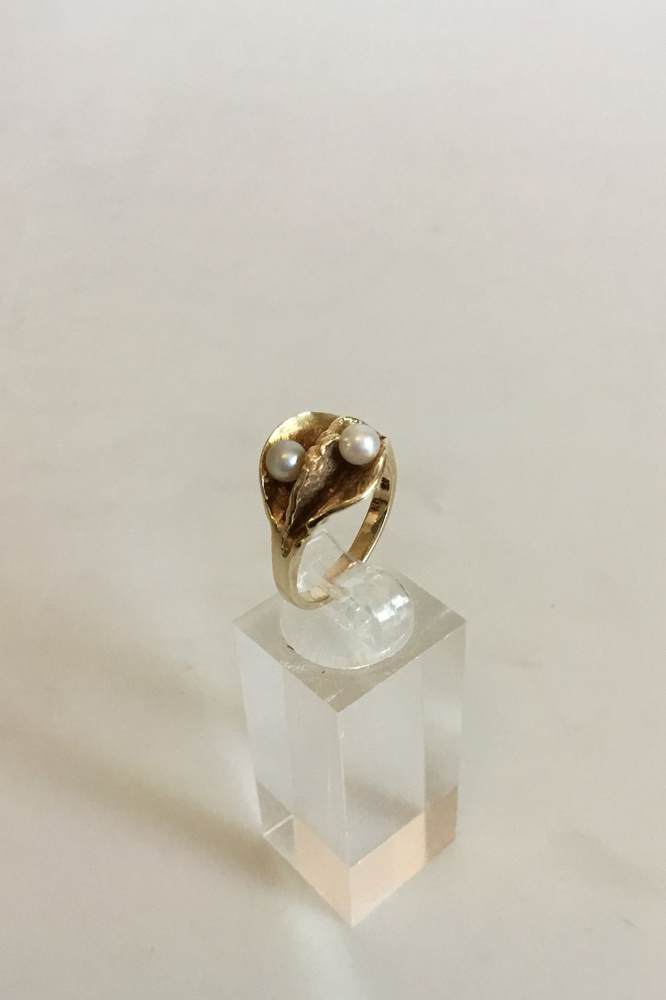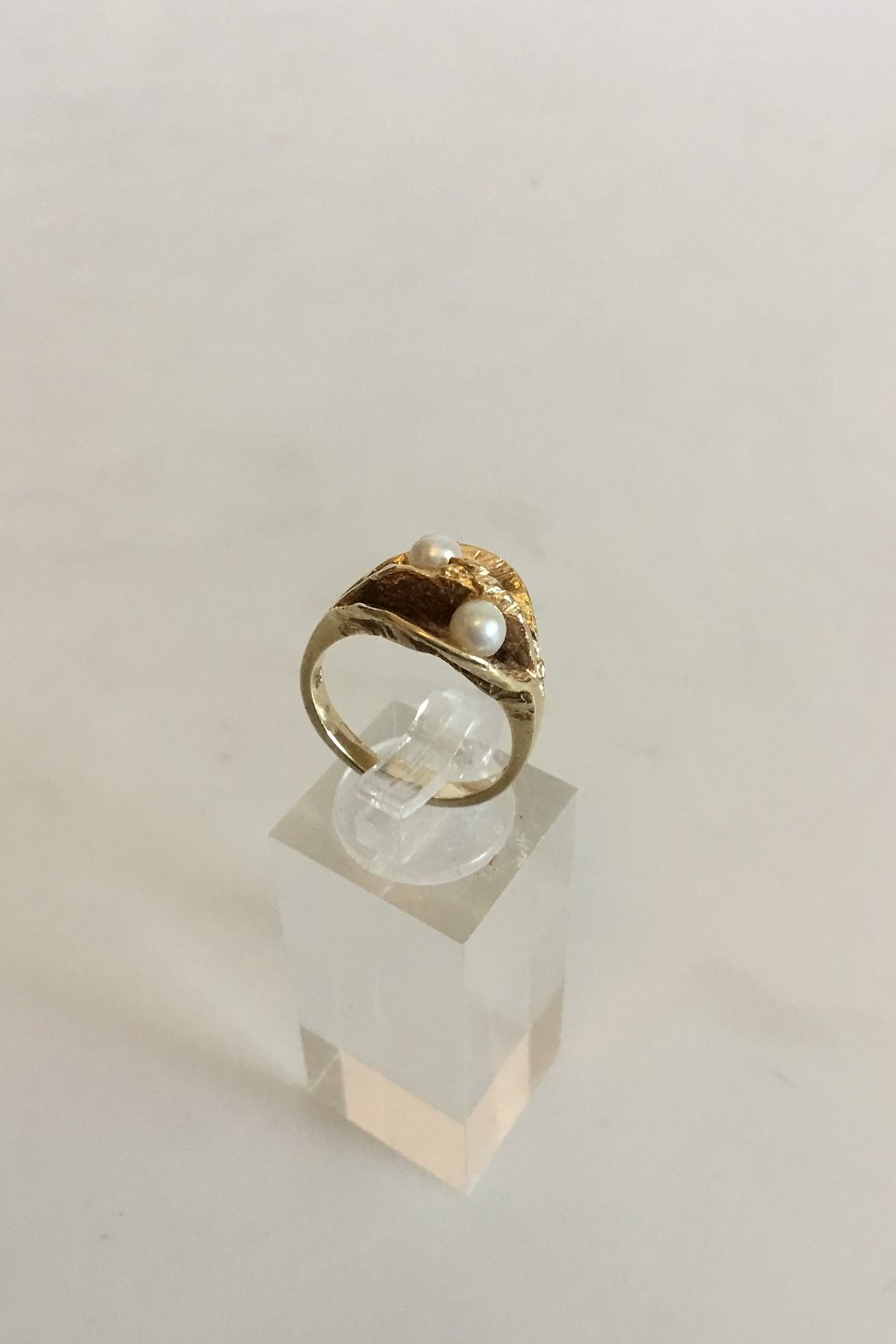 Ring i 14 K guld med to Perler. Ringstørrelse 52. Vejer 5.48 gram. Stemplet 585 H8 (1934)