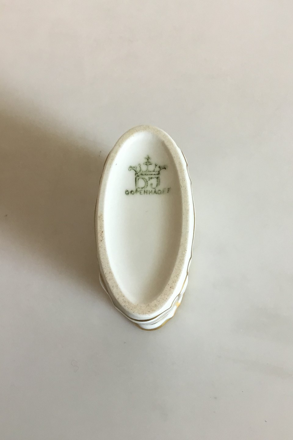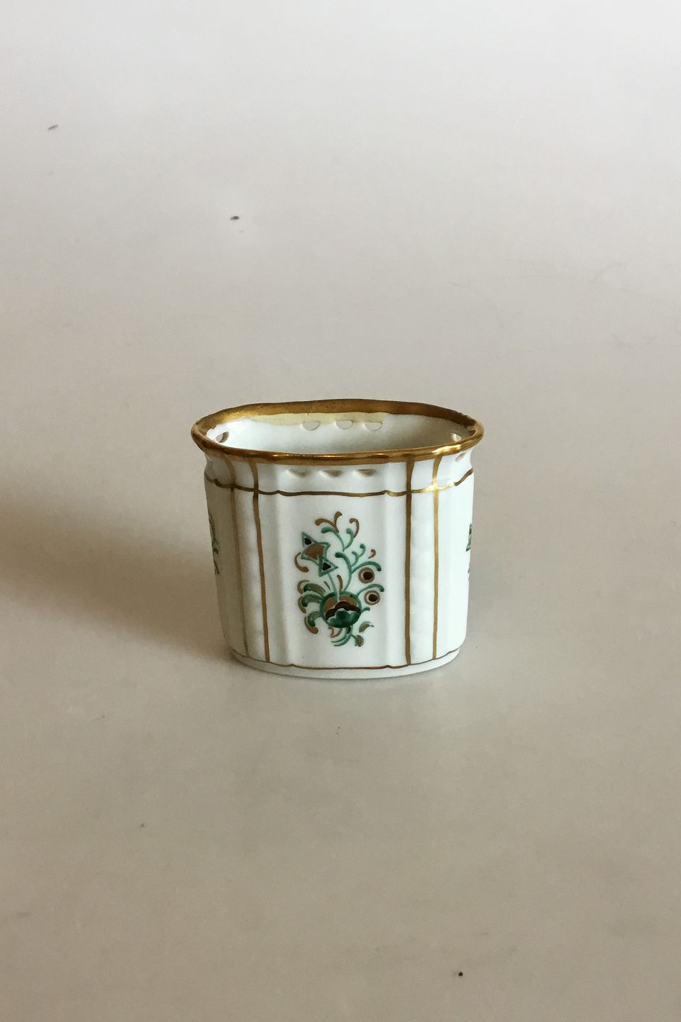 Dahl Jensen Dronning Tandstikbæger med guld og gennembrudt kant. Måler 6,6 cm