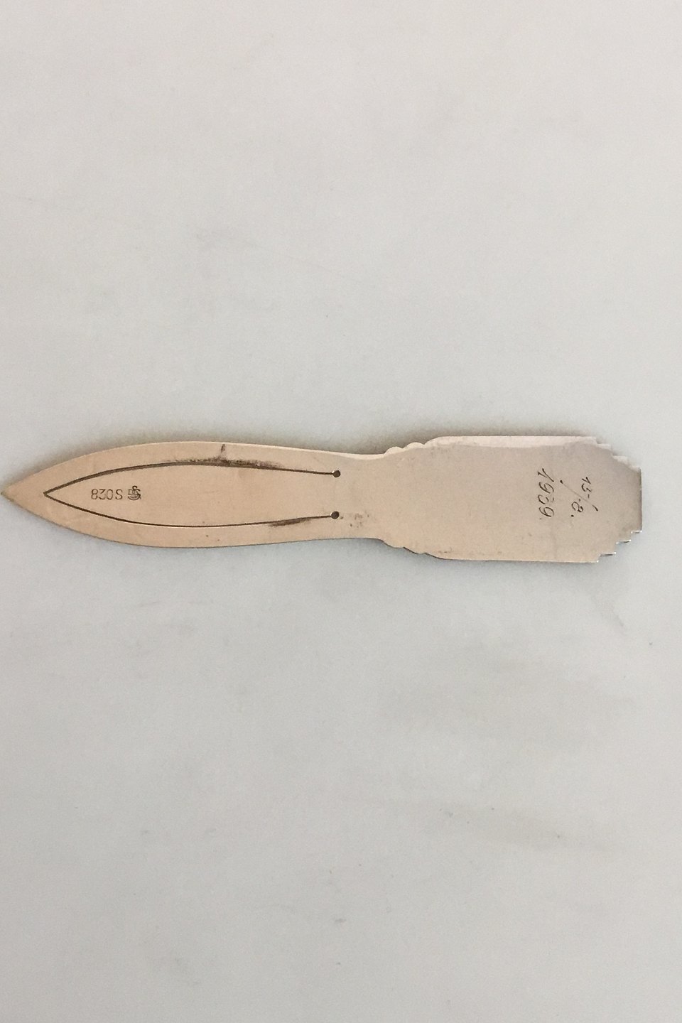 Danske guldsmedes sølvvarefabrik Bogmærke i Sølv. "Hadsten Husholdningsskole". Med indgravering. Lidt buler. Måler 9,8 cm