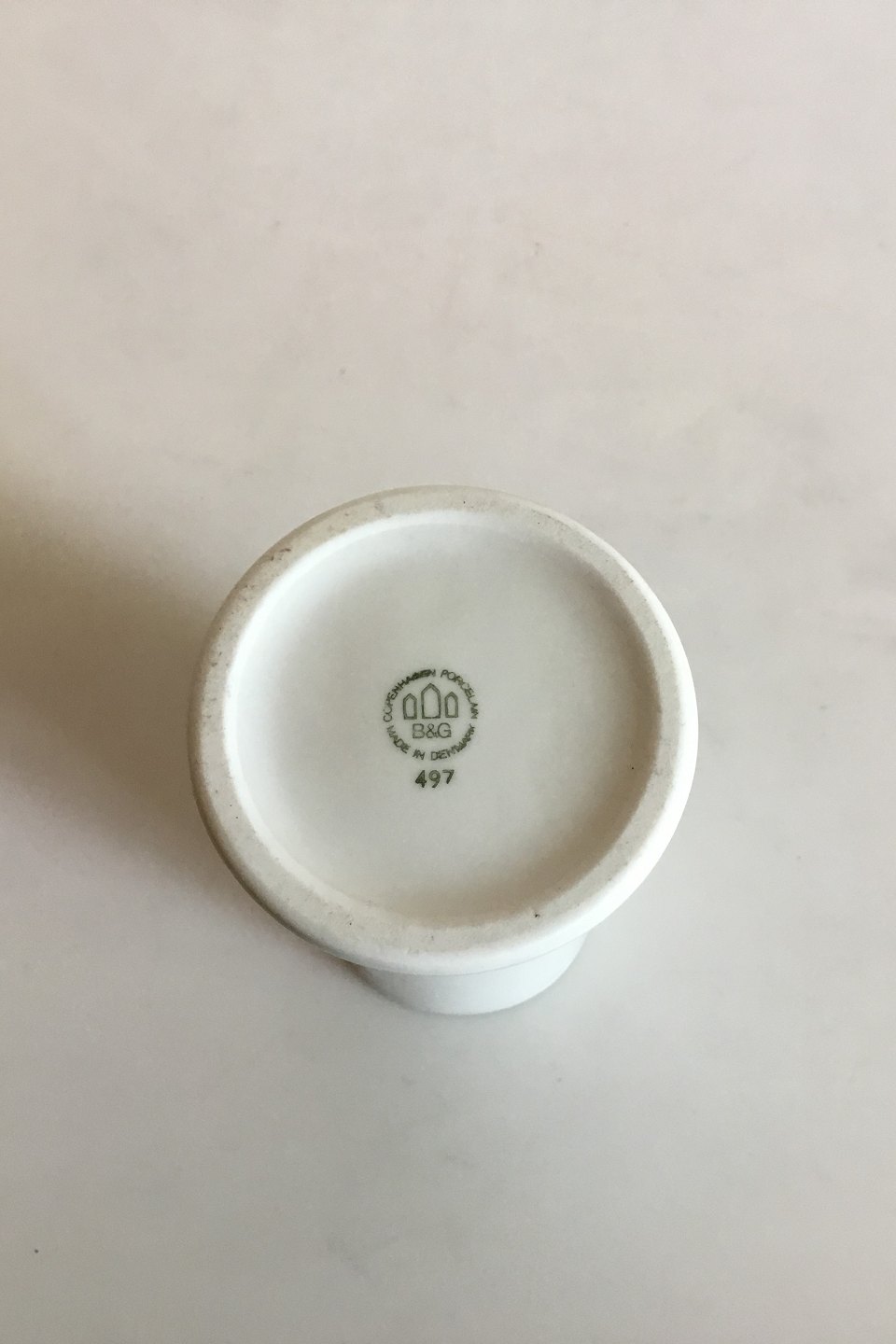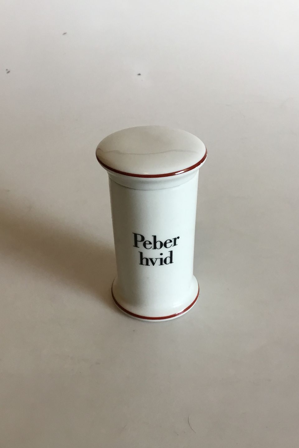 Bing & Grøndahl Peber Hvid Krydderikrykke No 497 fra Apotekerserien designet af Bo Bonfils i 1970'erne. 11 cm H.