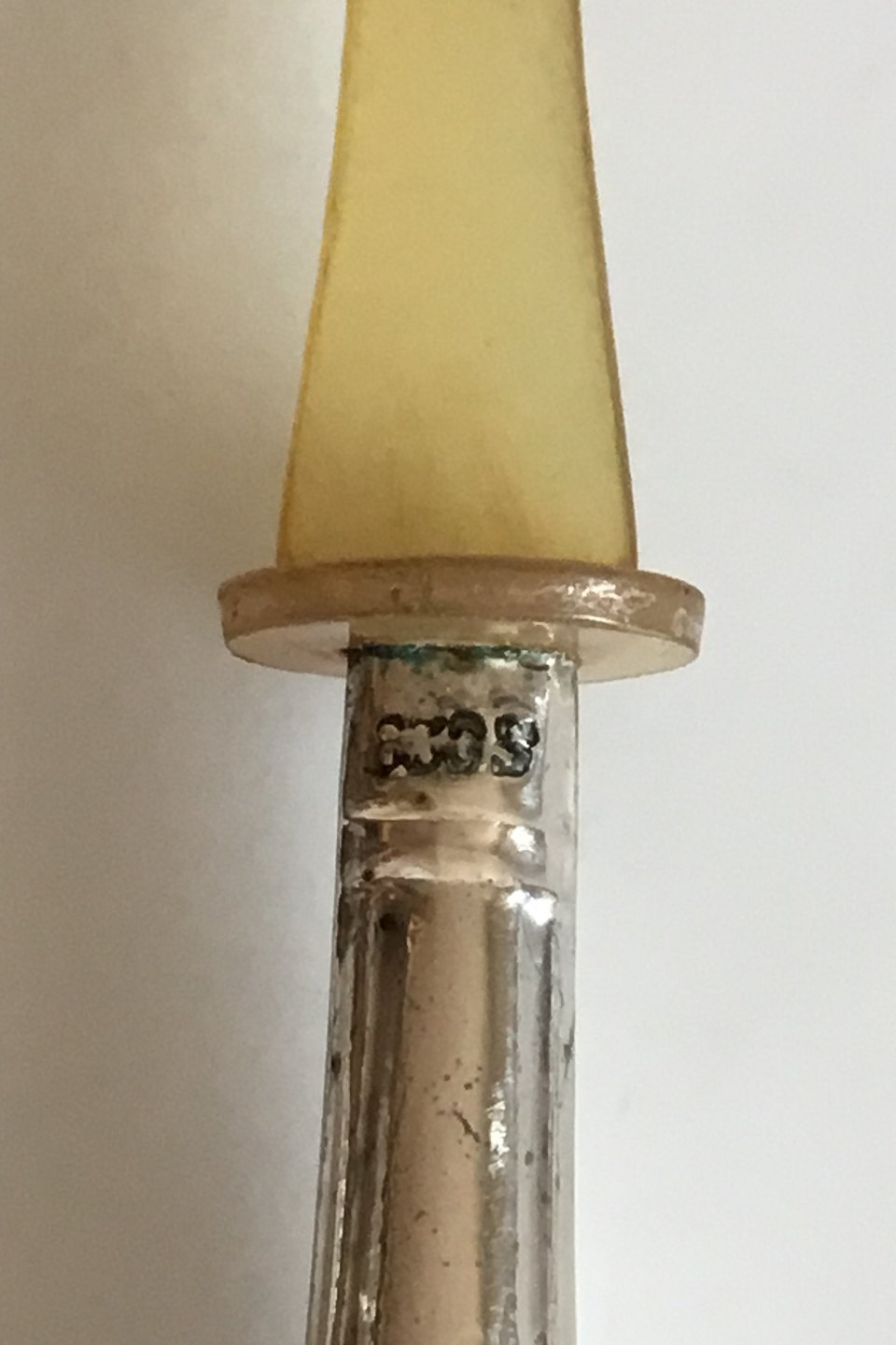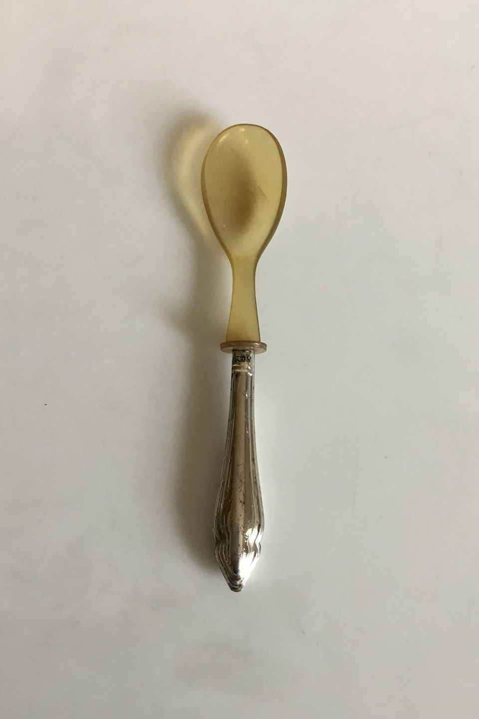 Lille serveringsske i Sølv med blad af horn. Måler 14,8 cm. Slidt