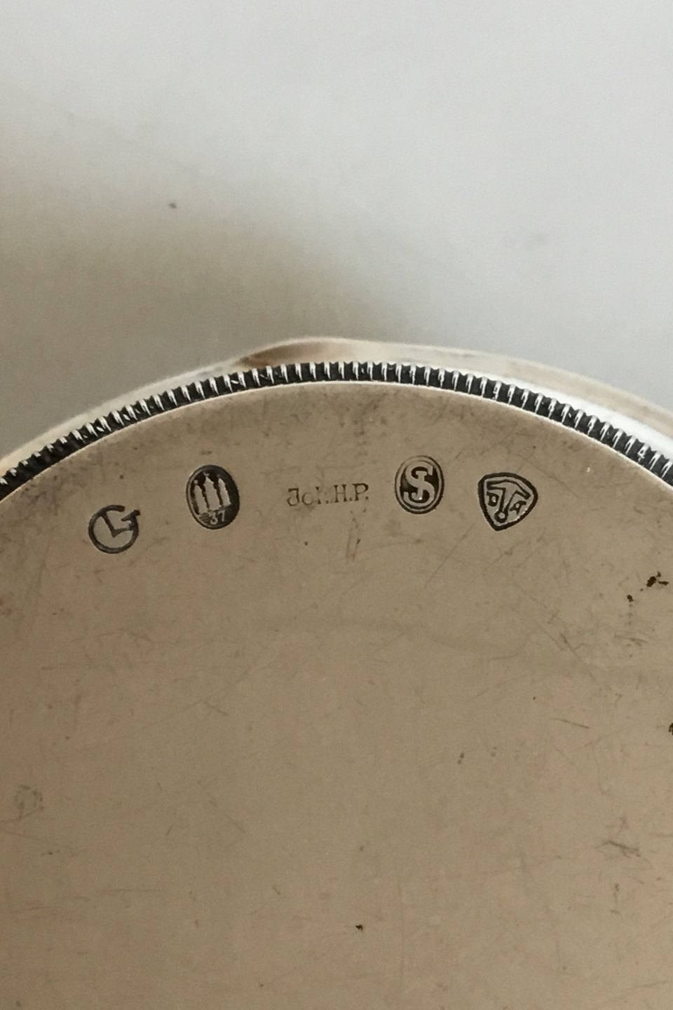 Grann & Laglye Silver Butter dish with handle of Bone. Measures 4.7 cm / 1 27/32 in x 10.7 cm / 4 7/32 in. dia.