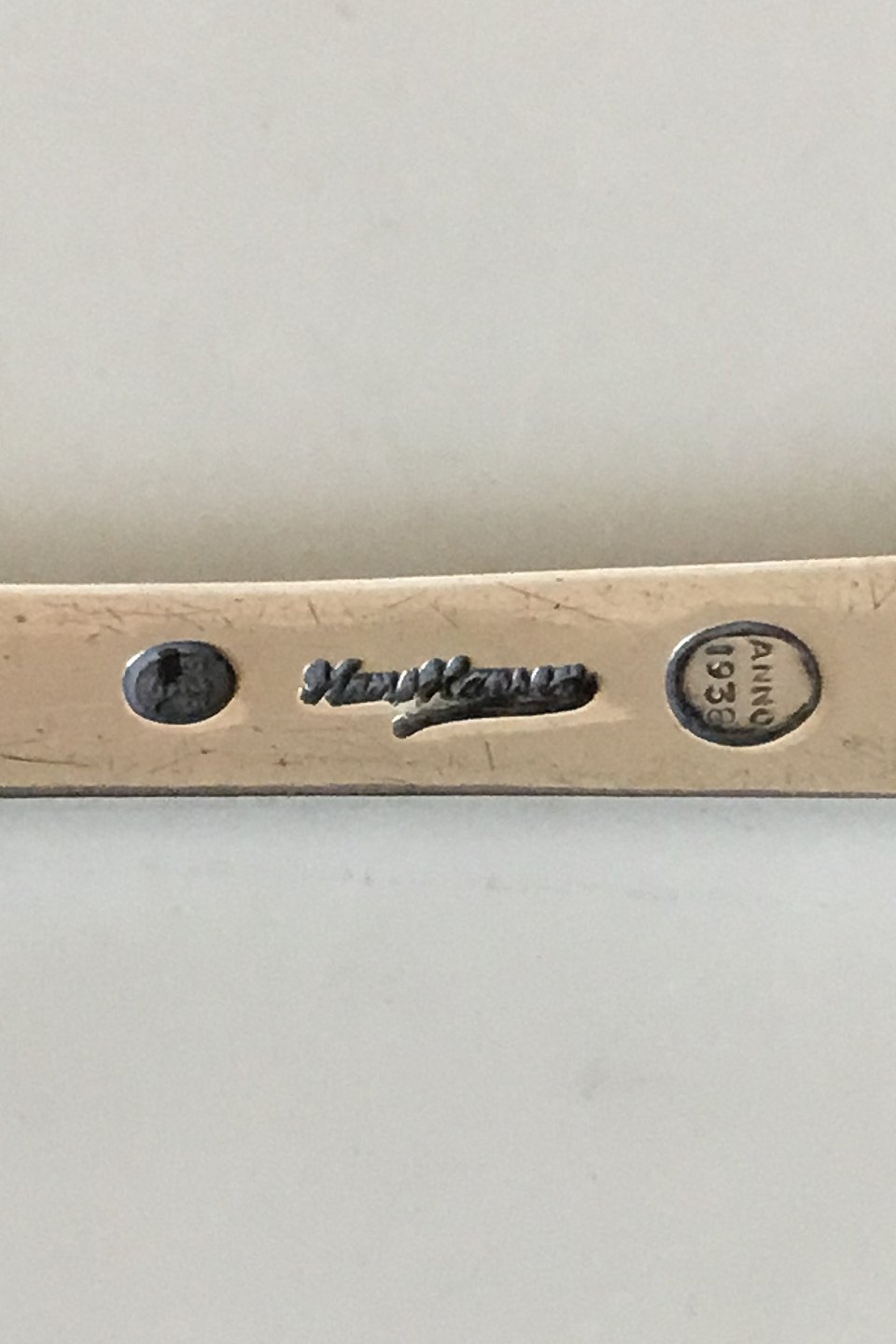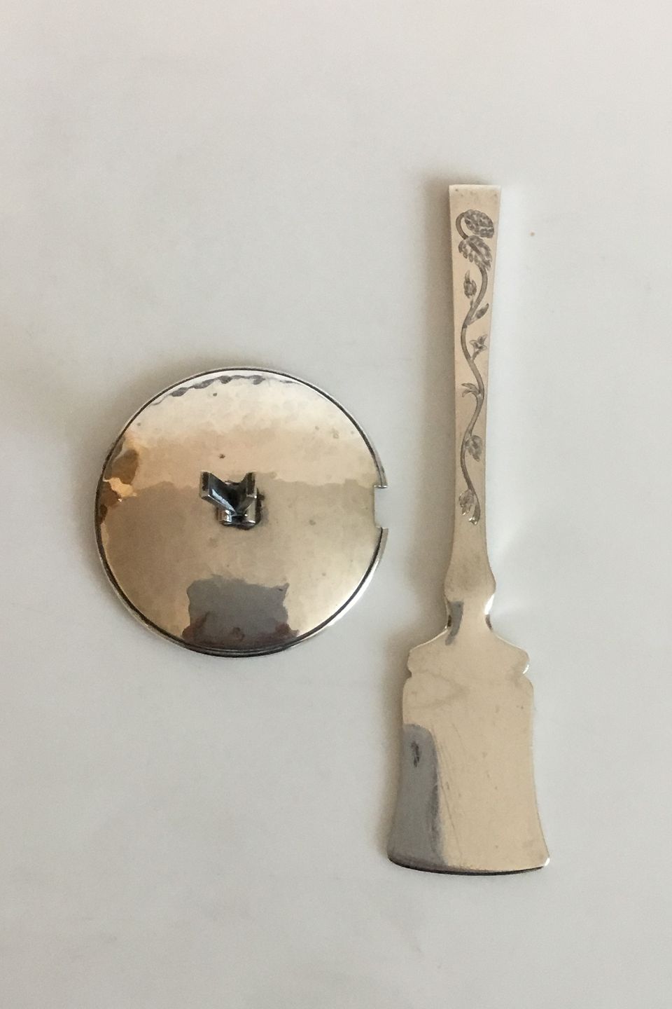 Hans Hansen Lid and Honey Spoon in Sterling Silver. Anno 1935. Measures Lid: 6.6 cm / 2 19/32 in. Spoon: 15.5 cm / 6 7/64 in. Weighs combined 88 g / 3.10 oz.