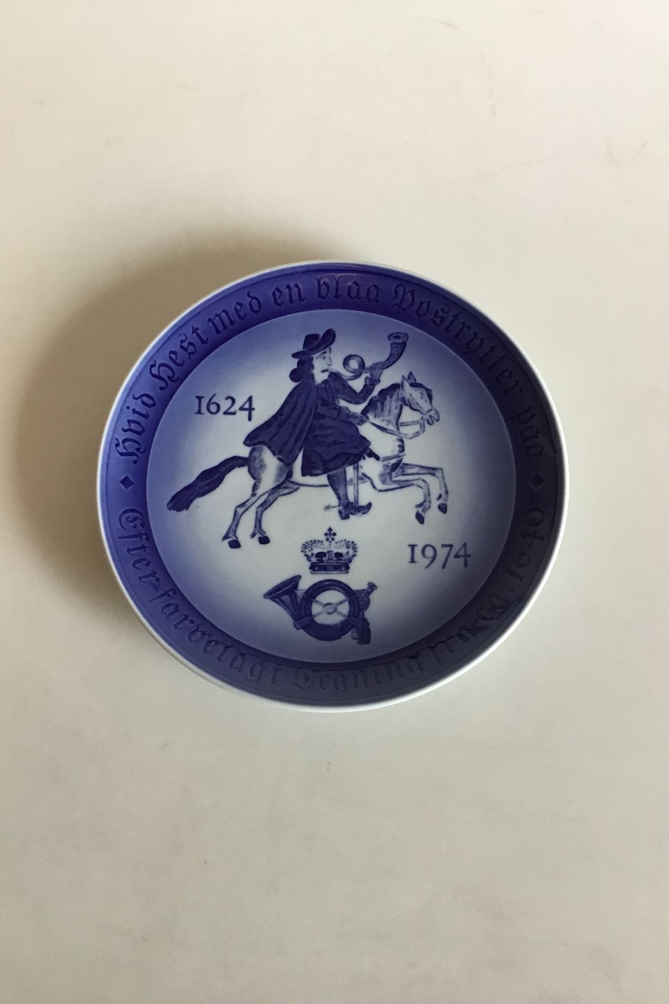 Royal Copenhagen Platte for Danmarks Post og Telegraf-væsens 350-års jubilæum. 1624-1974. Måler 18 cm