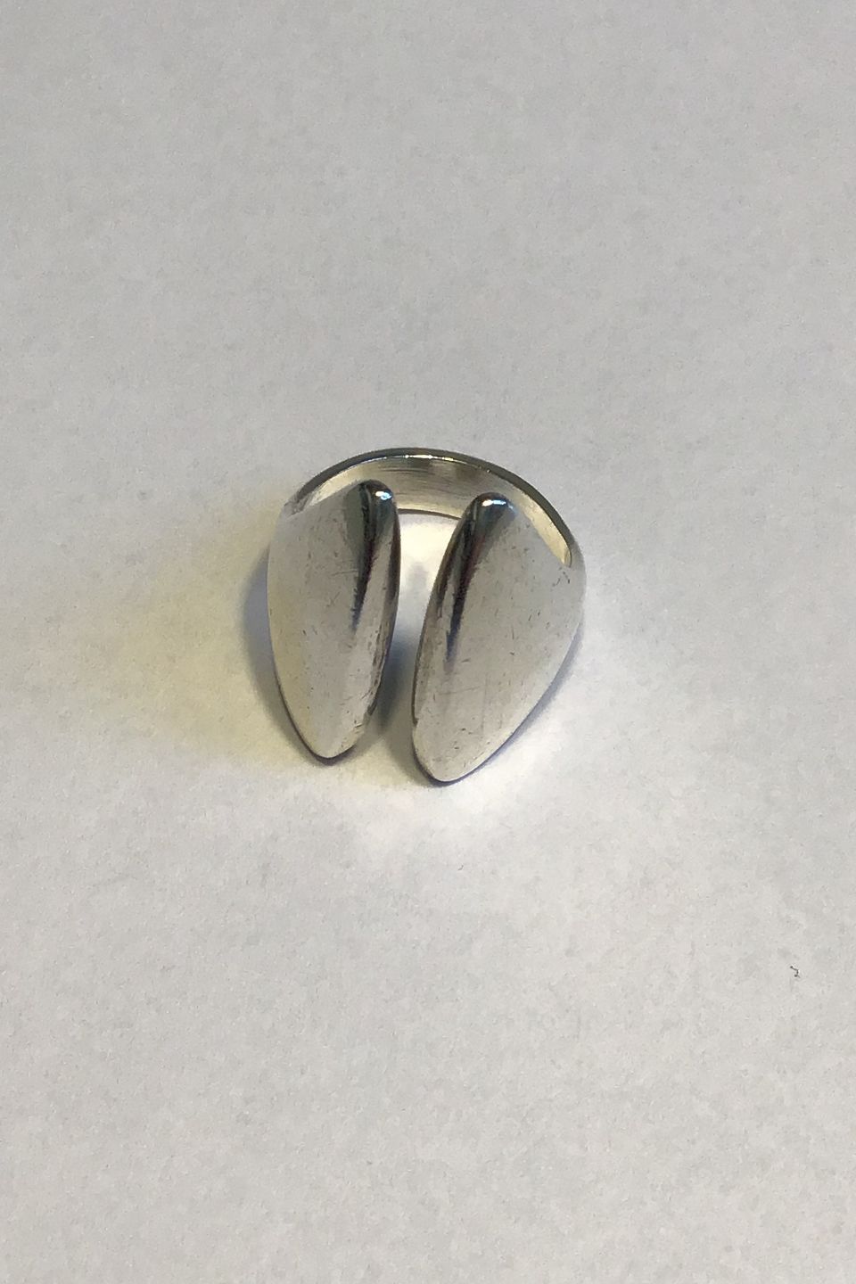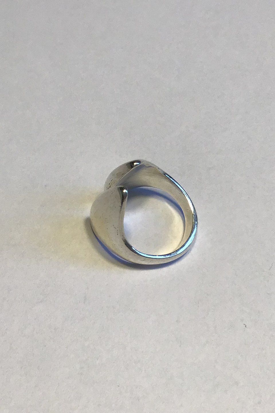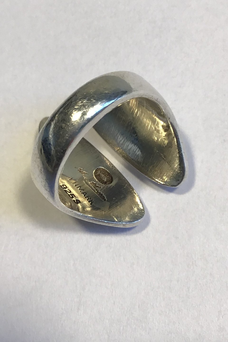 Hans Hansen Moderne Ring i Sterling Sølv No. 201 med åben, aflang front. Str.55, vejer 11,9 gr. Dobbelt stemplet Hans Hansen og Georg Jensen.