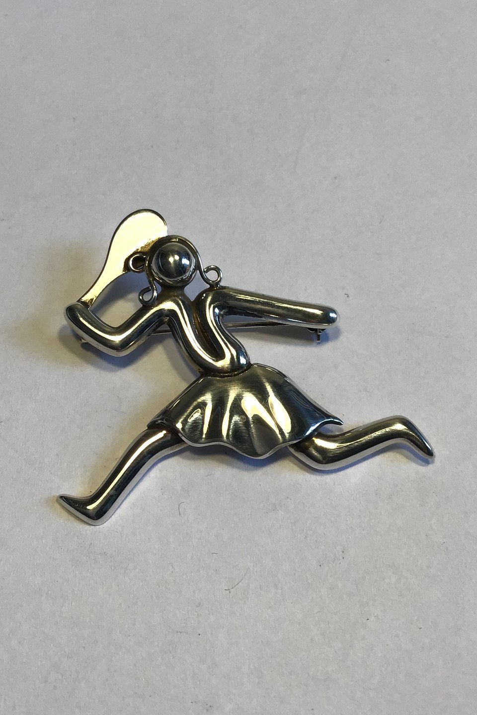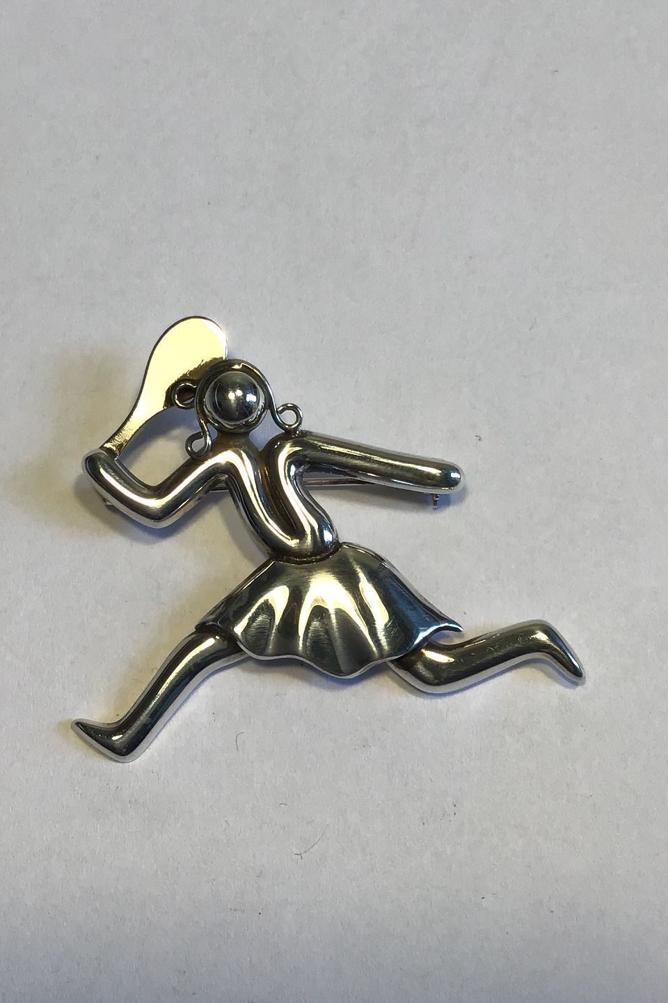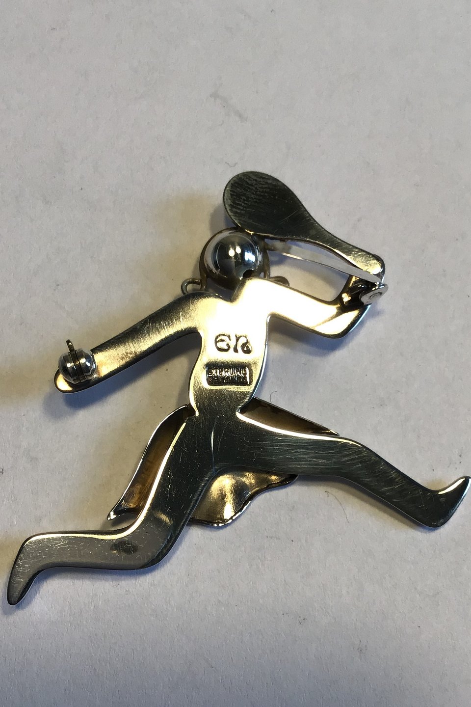 Evald Nielsen Sterling Silver Brooch Tennisplayer H 4.8 cm/1.88 inches Weight 13.9 gr/0.49 oz.