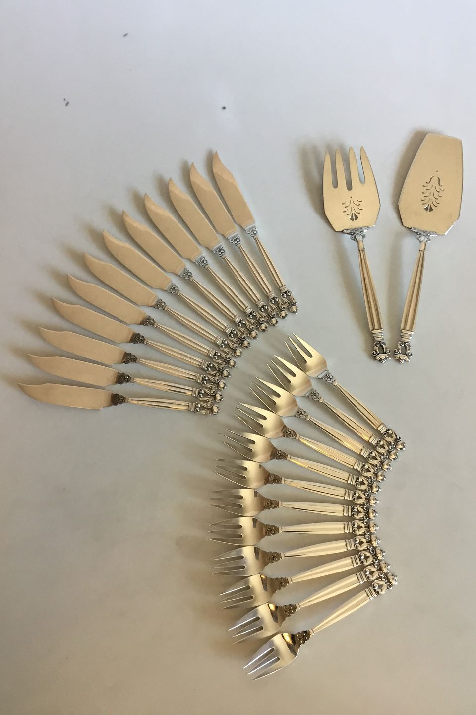 Georg Jensen Sterling Sølv Konge Fiskebestik til 12 personer incl.serveringssæt, ialt 26 dele