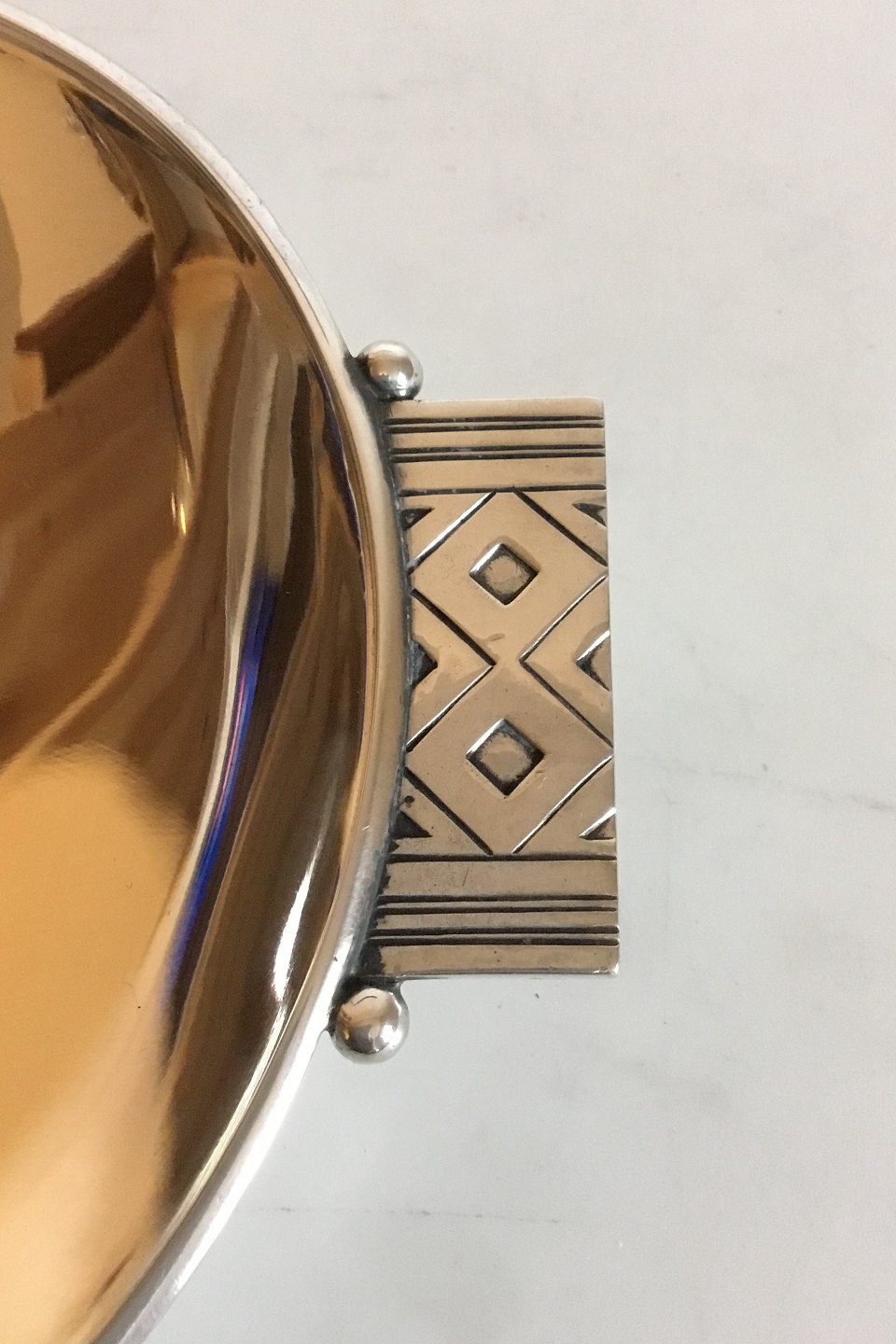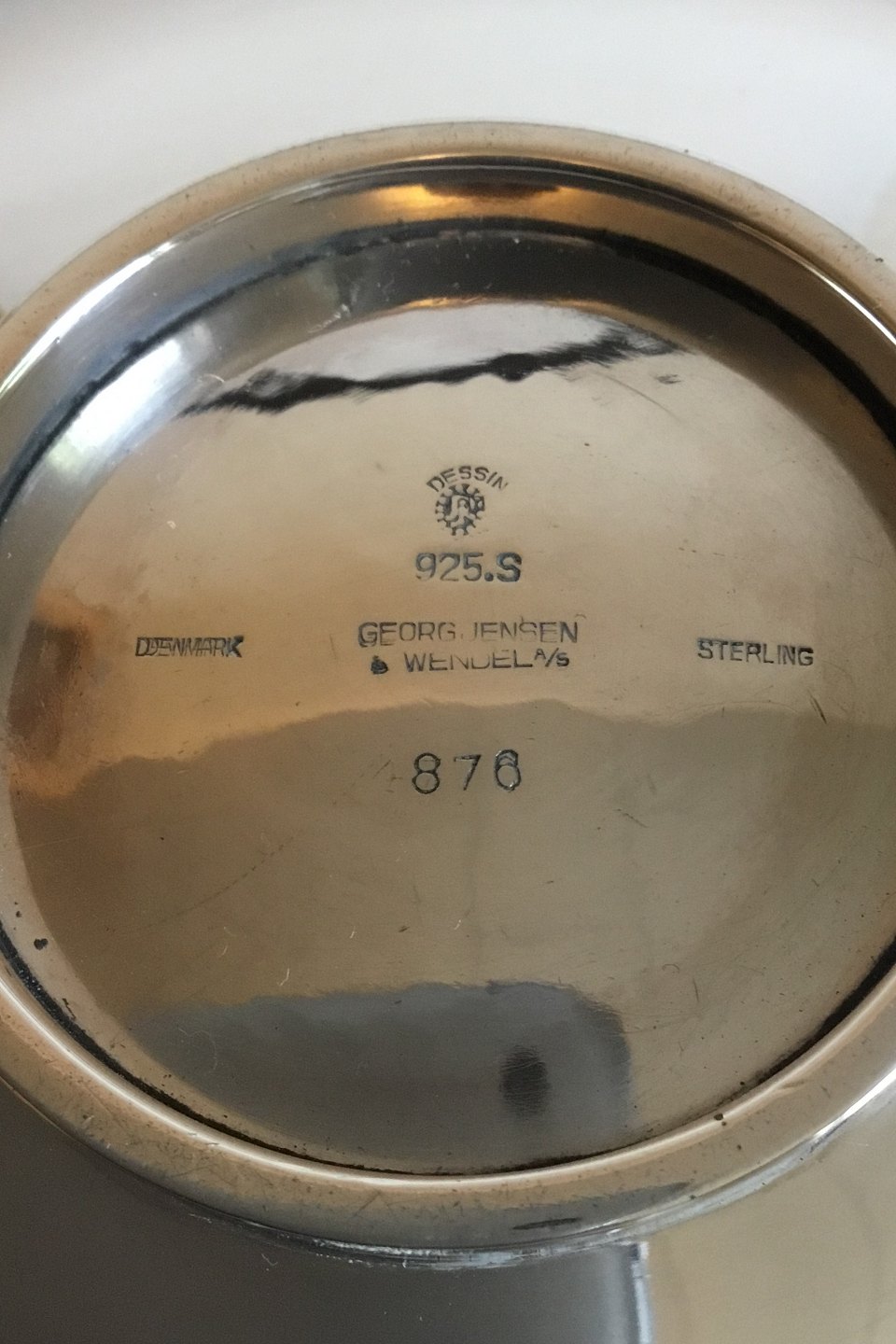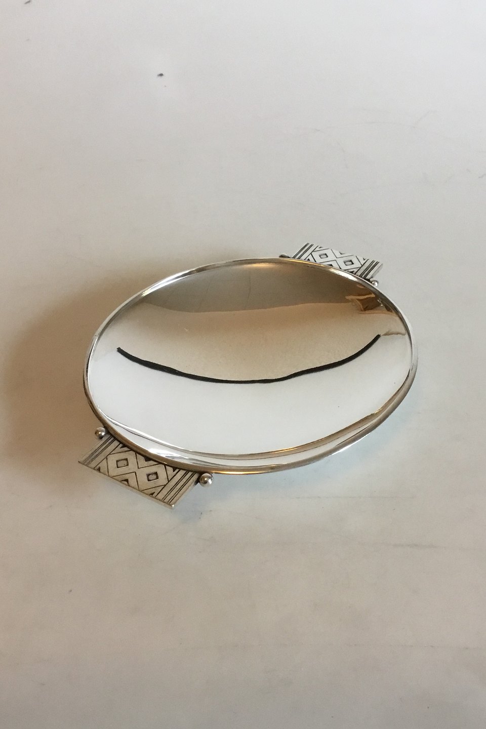 Georg Jensen Sterling Silver Flad Skål Rune No 876. Måler 18 cm. Vejer 222 gram