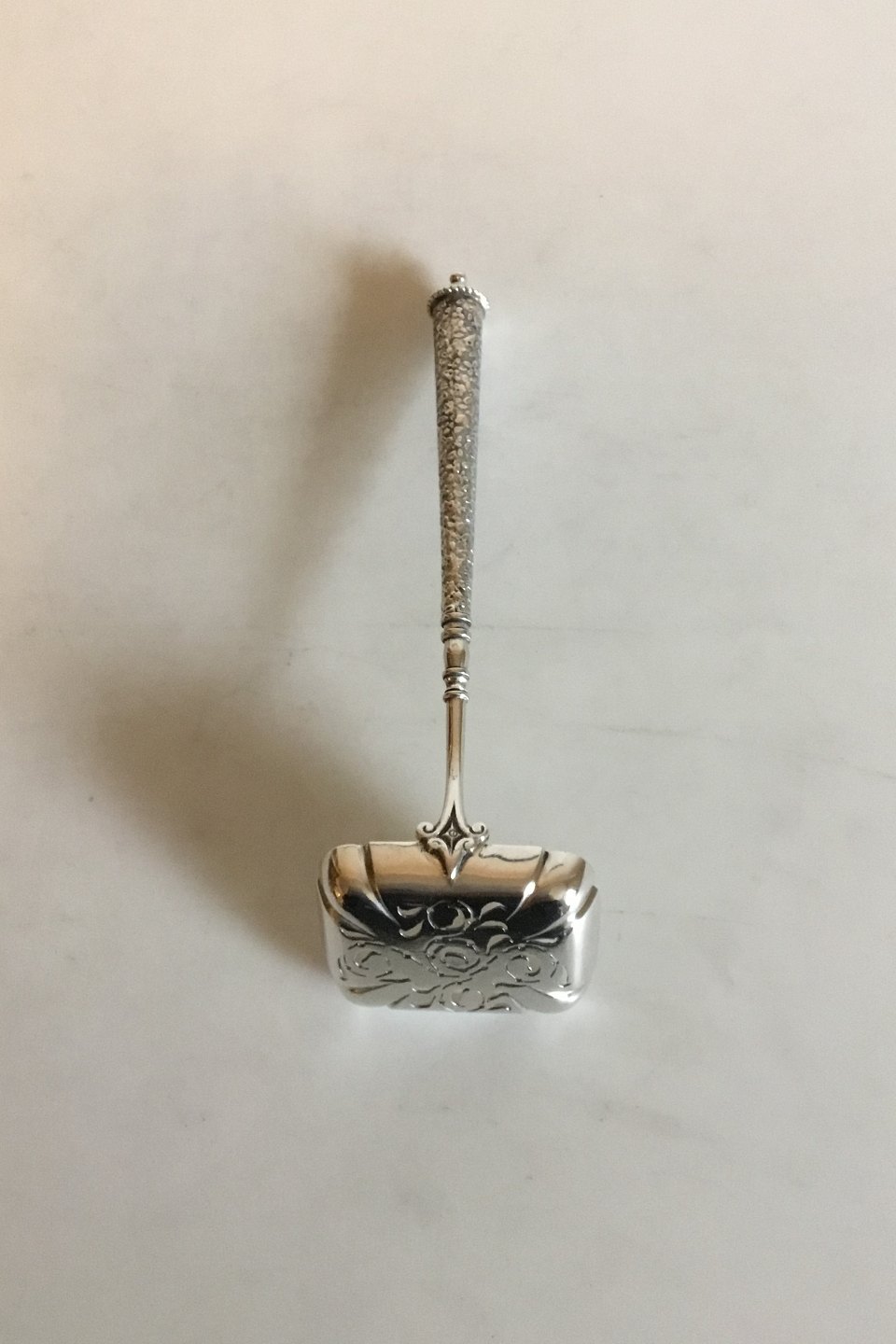 P. Hertz Strøske / Syltetøjsske i Sølv. Måler 17,7 cm