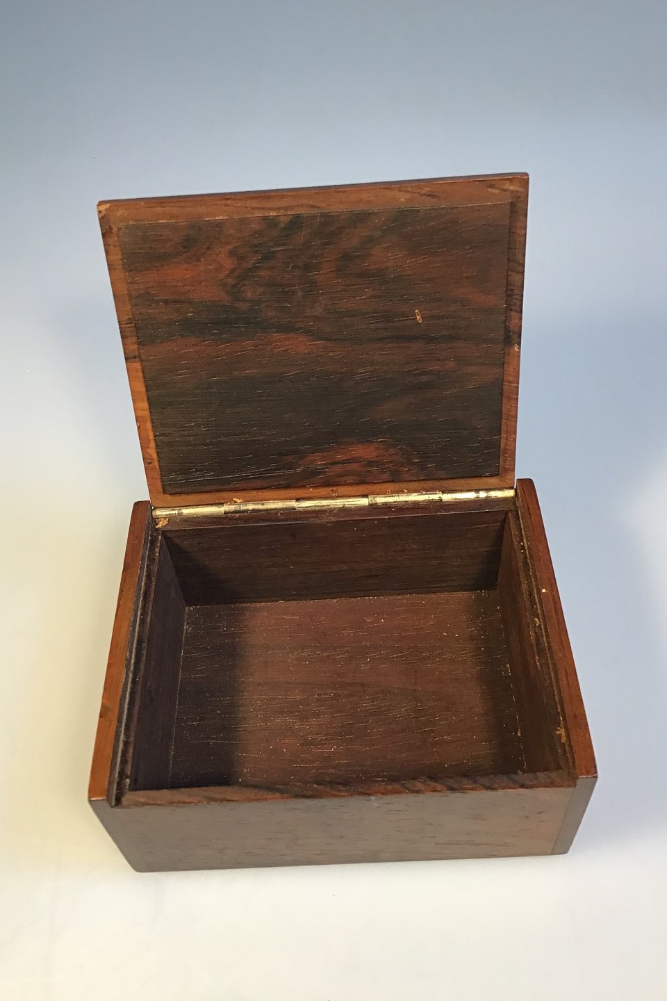 Hans Hansen Rosewoodbox with silverinlay L 11 cm/4.33 inches, W 8,5 cm/ 3.34 inches H 4,8 cm/1.88 inches (Small nick in lid)