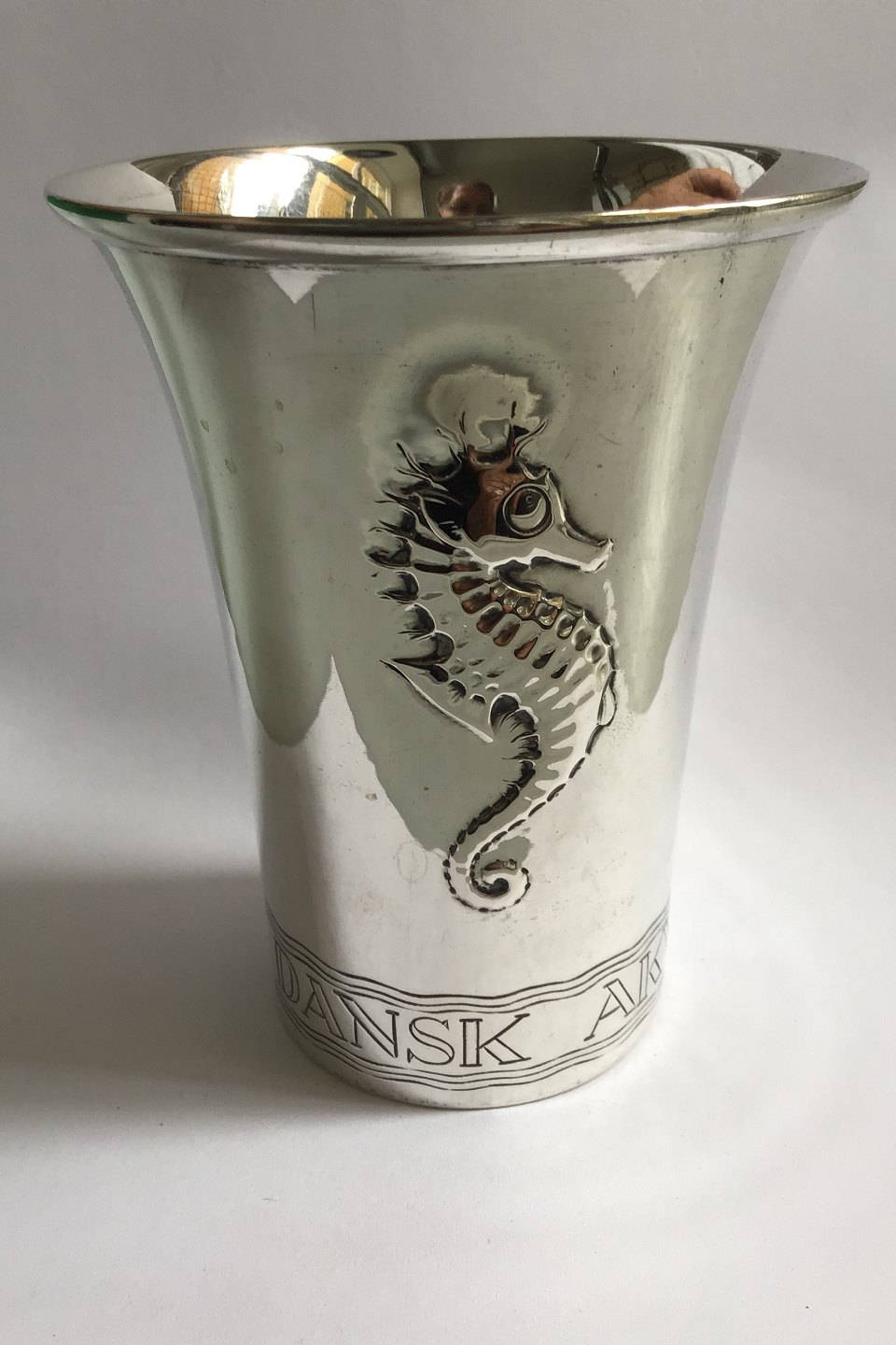 Evald Nielsen Sølv pokal "Dansk Akvarie Selskab" Udsmykket med søhest H 11,2 cm Vægt 144.2 gr
