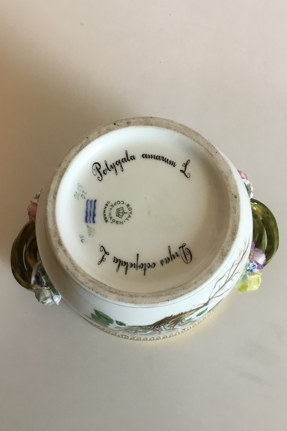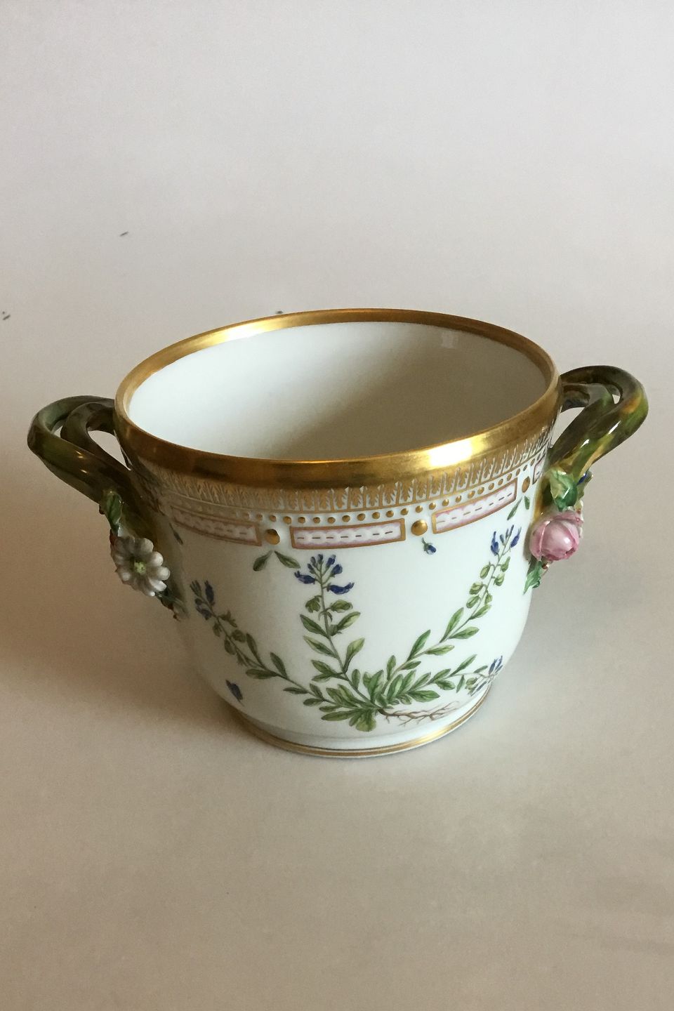 Royal Copenhagen Flora Danica Wine Cooler No 20/3570. Measures 12.2 cm / 4 51/64 in. x 20.8 cm / 8 3/16 in. 1st Quality. Latin name: "Dryas octopetala L." and "Polygala amarum L."