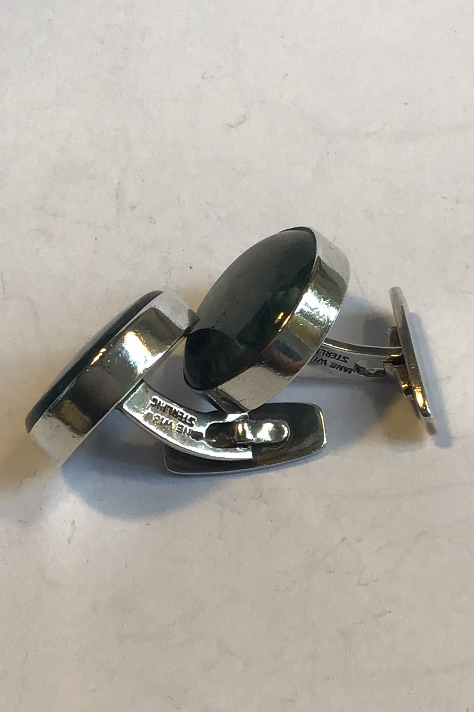 Jane Wiberg Sterling Sølv og Mosagat Manchetknapper No 203 Diameter 2.3 cm Vejer 23.6 gr