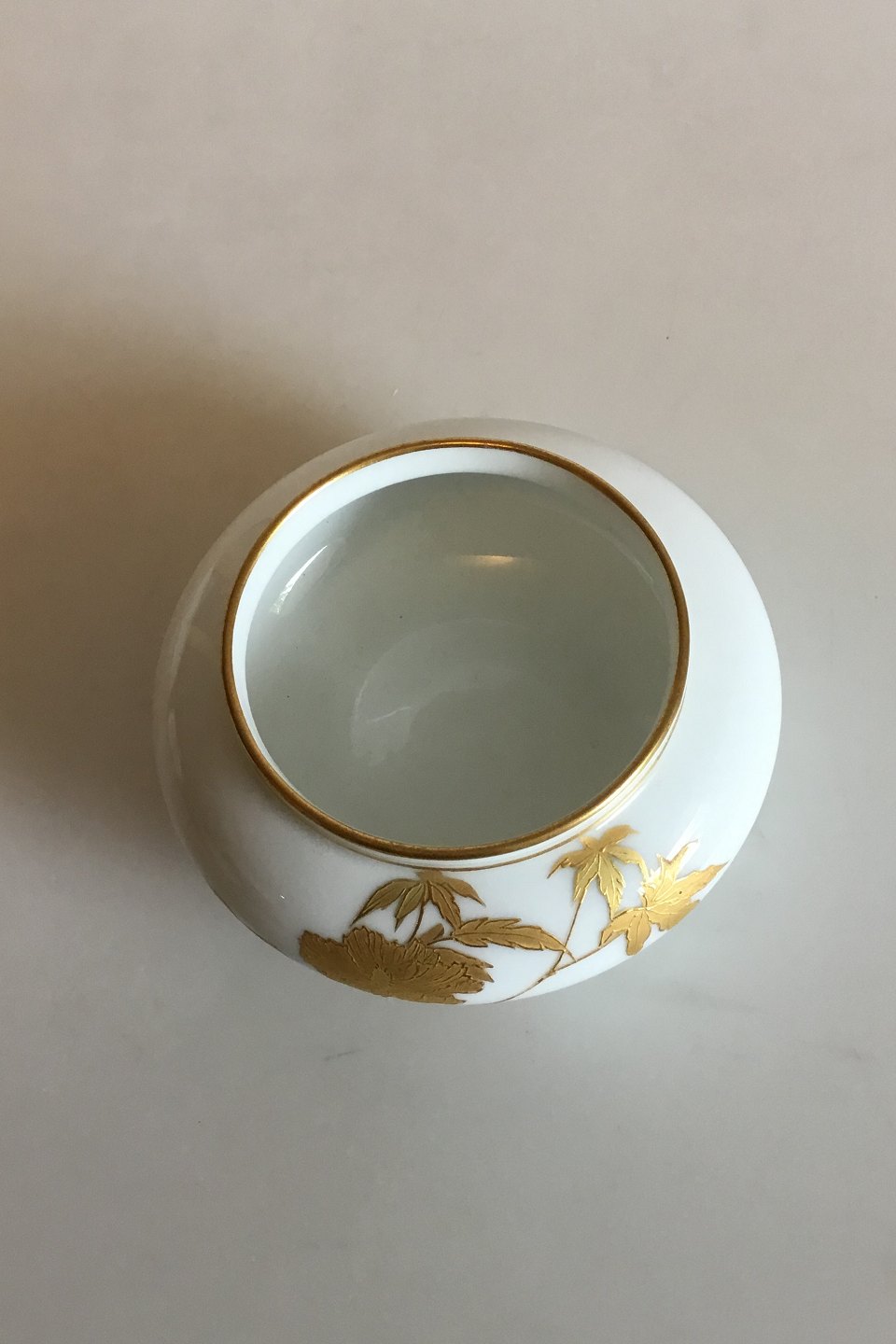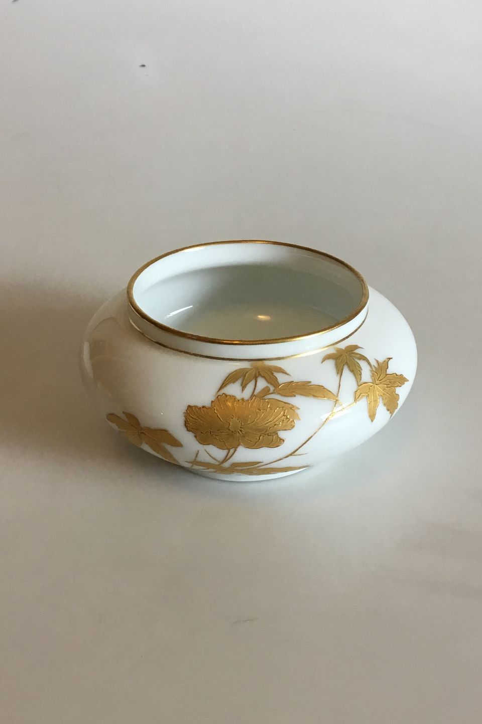 Royal Copenhagen Lille Skål med dekoration i Guld. Fra 1870-1890. I god stand. Måler 5,2 cm x 10,9 cm dia.
