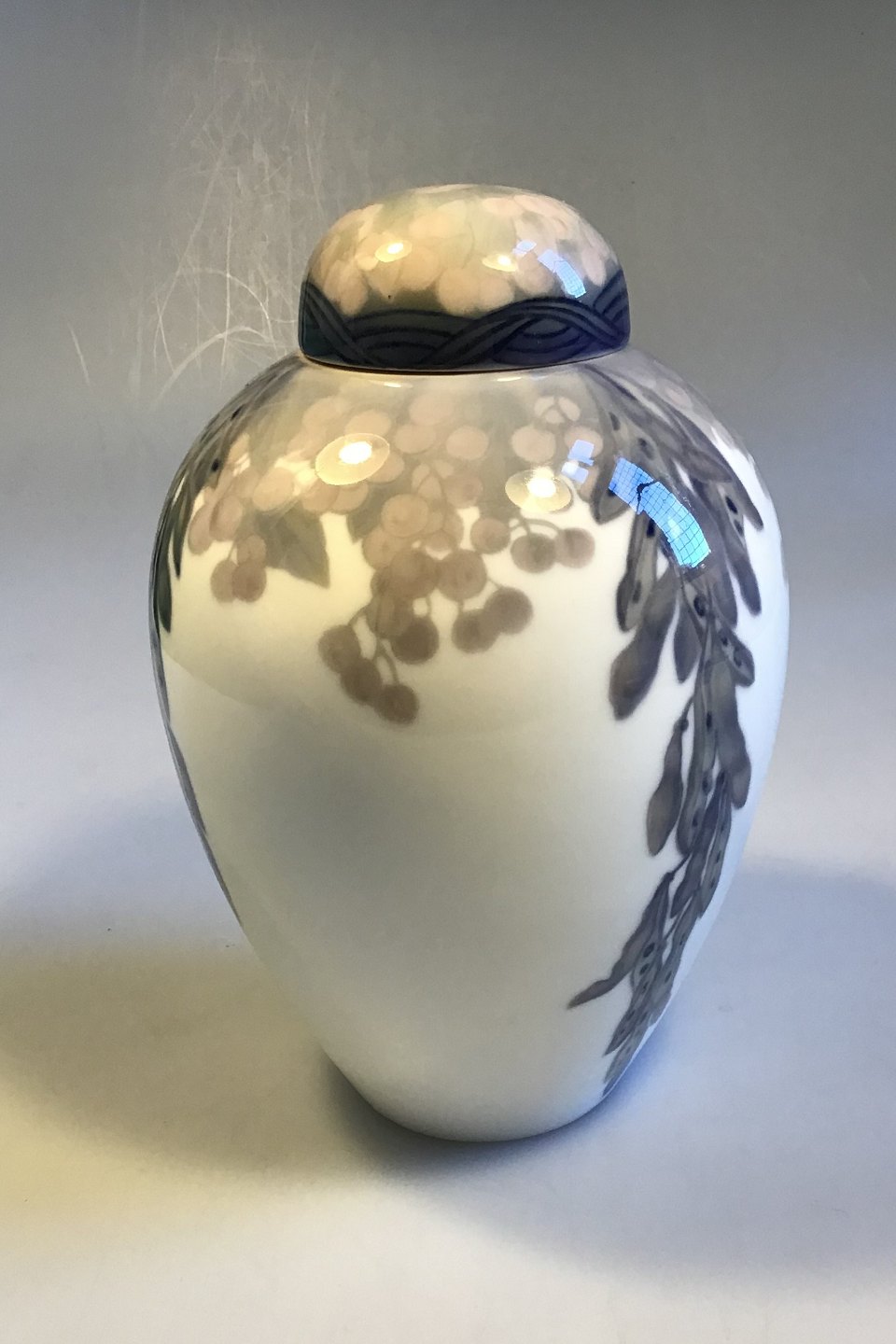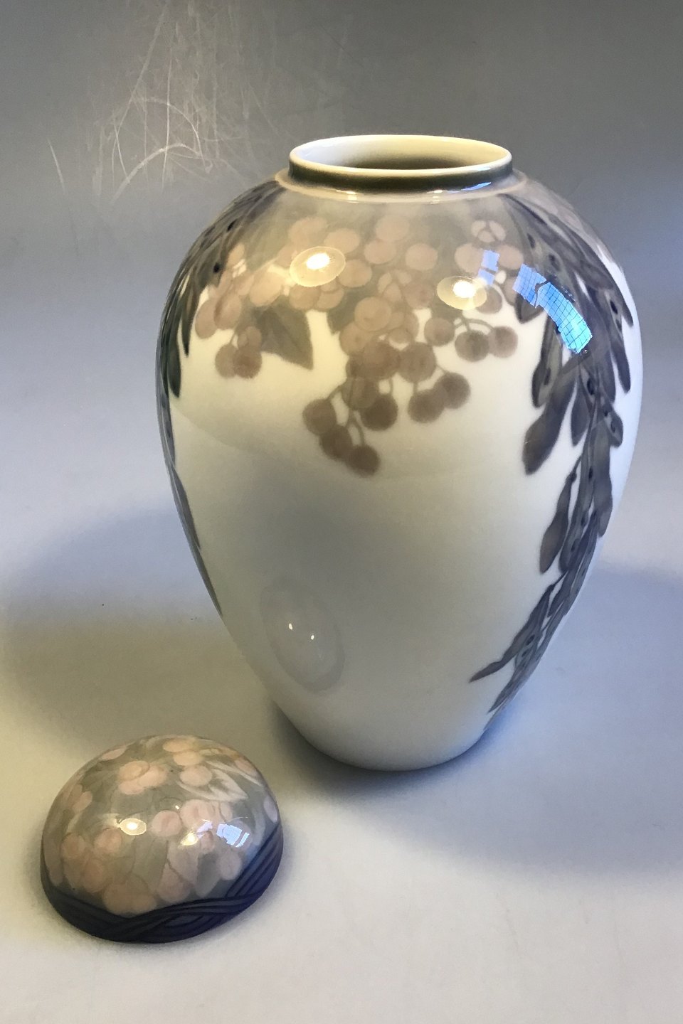 Bing & Grøndahl Unique Lidded vase decorated with Berries og Seed Heads Hight 22 cm/8.66" Signed Augusta Nielsen Dedication Ellen Beate Julen(Christmas) 1912