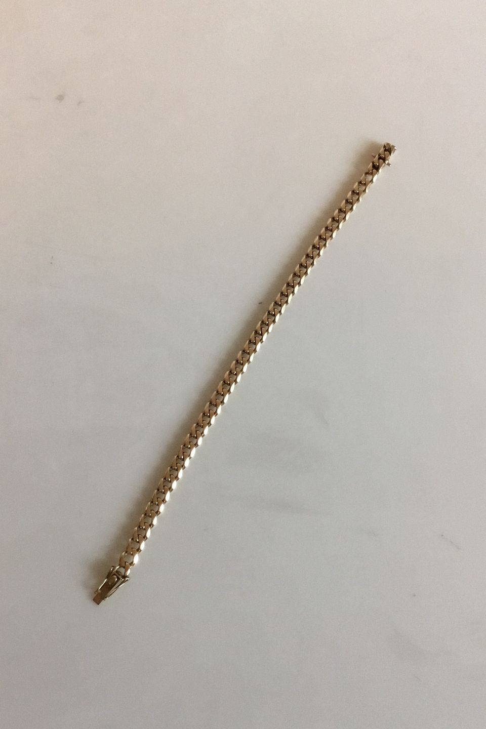 Armbånd/kæde i 14 K. guld. Stemplet B.H. 585. Måler 19,2 cm og 0.6 cm bred. Vejer 17,6