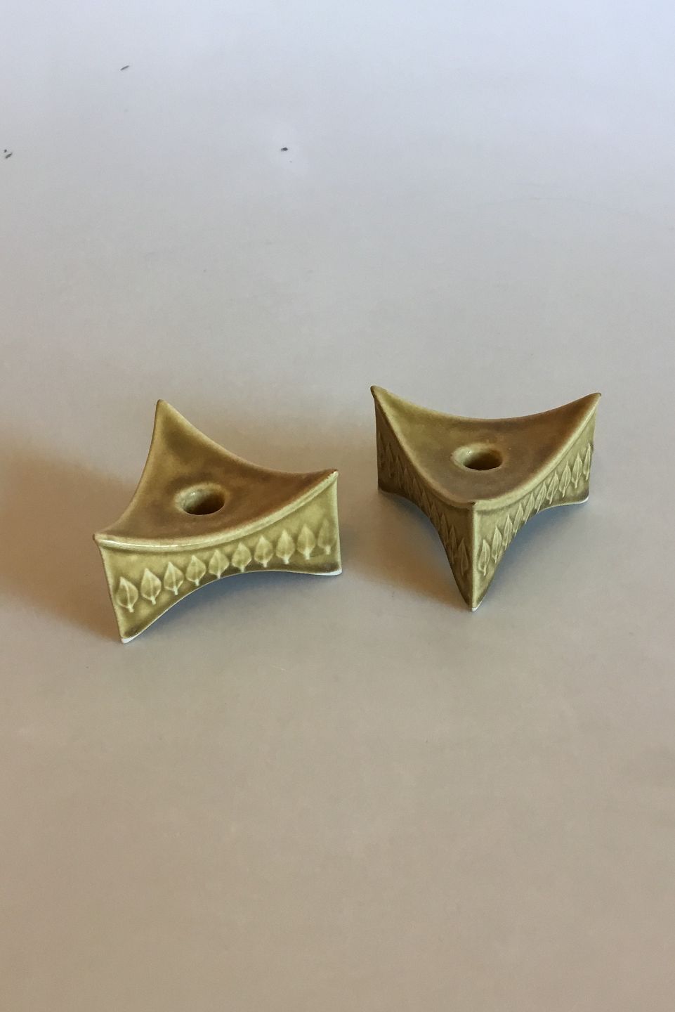 Bing & Grondahl Jens Quistgaard Midcentury Modern Candlesticks from the Relief Series. Ceramic Stoneware (Kronjyden). Measures 5 cm / 1 31/32 in. x 8.5 cm / 3 11/32 in.