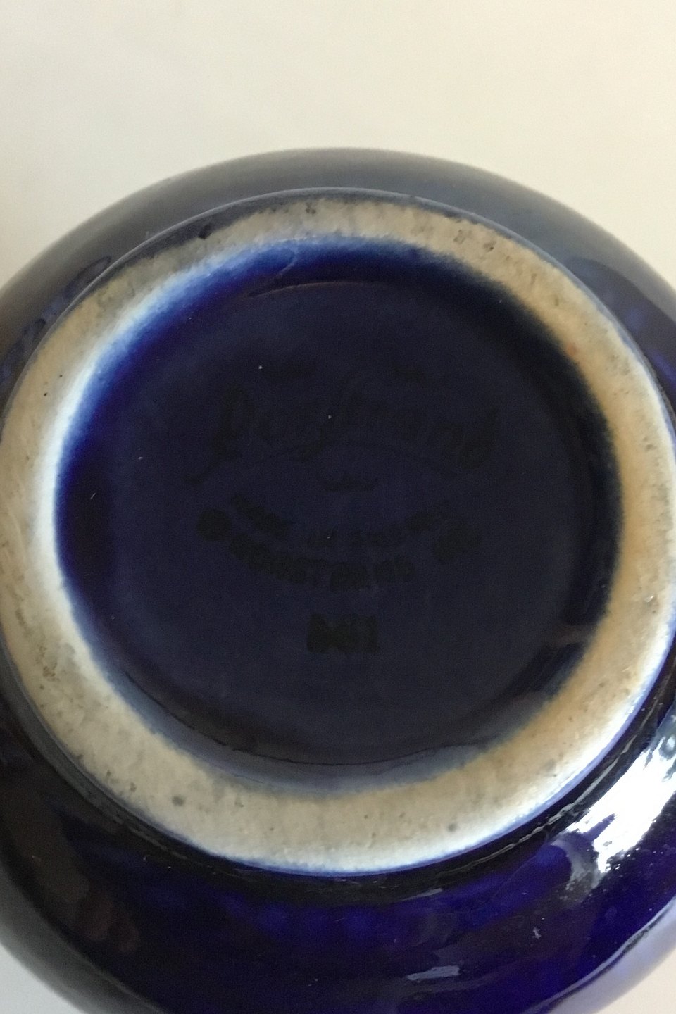 Blaa Eld / Blue Fire designed by Hertha Bengtsson manufactured by Rorstrand from 1950 to 1971. It has a great retro shape and decorated with a brilliant herringbone in a gorgeous blue high gloss glaze. Marked to the base with 'Rörstrand Sweden`