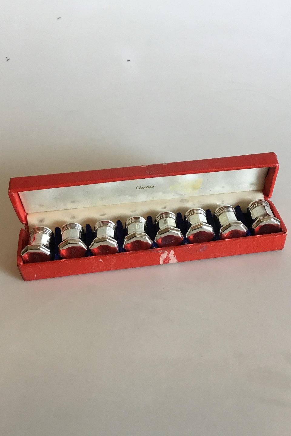 Cartier Sterling Silver Set of 8 Salt Shakers. Measures 3.7 cm. Weighs 9 g / 0.32 oz. each