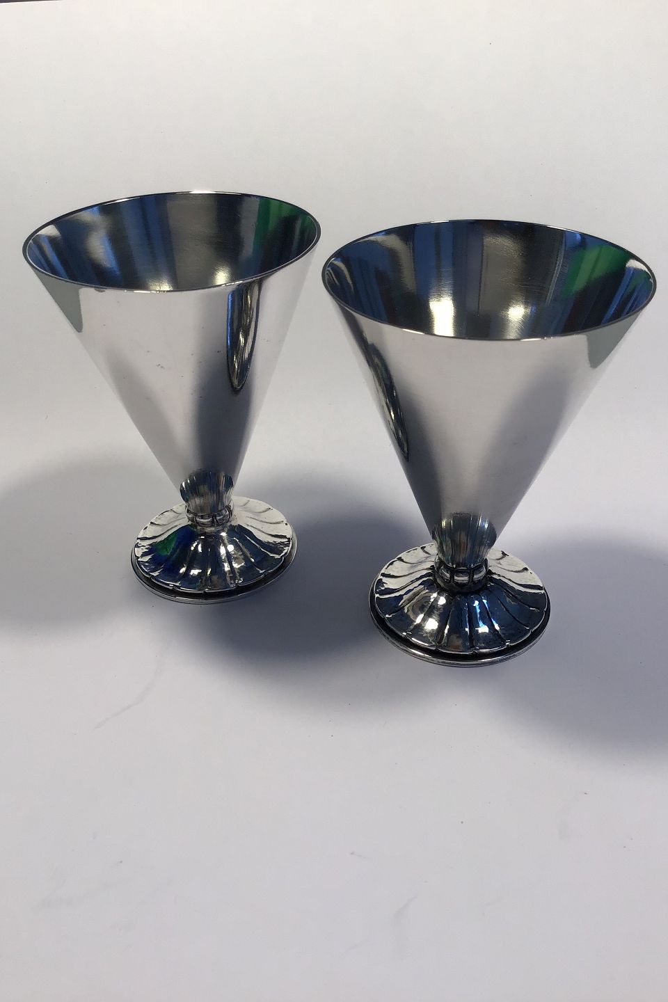 Georg Jensen Sterling Sølv Drikkebæger No 202 1930-1945 Design Oscar Gundlach-Pedersen H 7.5 cm Diam 5.5 cm Vægt 63 gr Det ene med meget utydelige stempler.