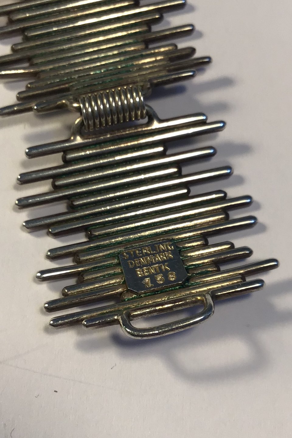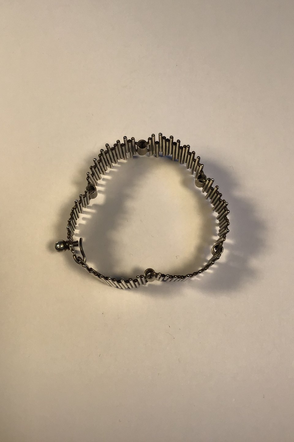 Bent Knudsen Sterling Sølv Leddelt Arnlænke Tværsiddende Stave Hægtelås med skruelukke L 17 cm Bredde 3 cm